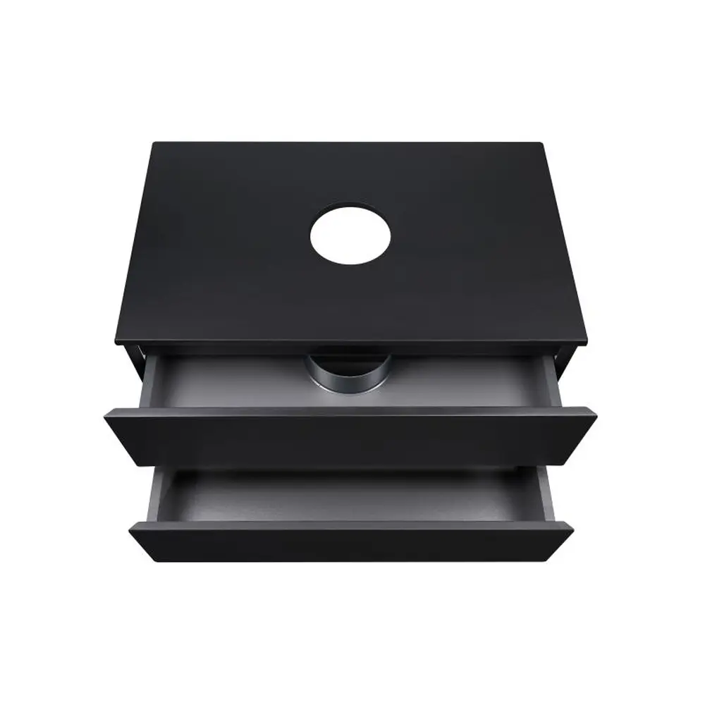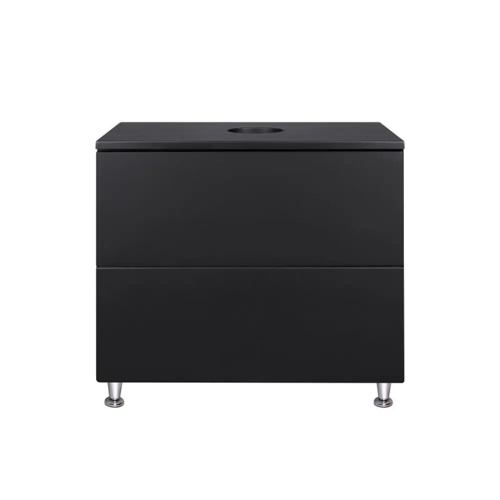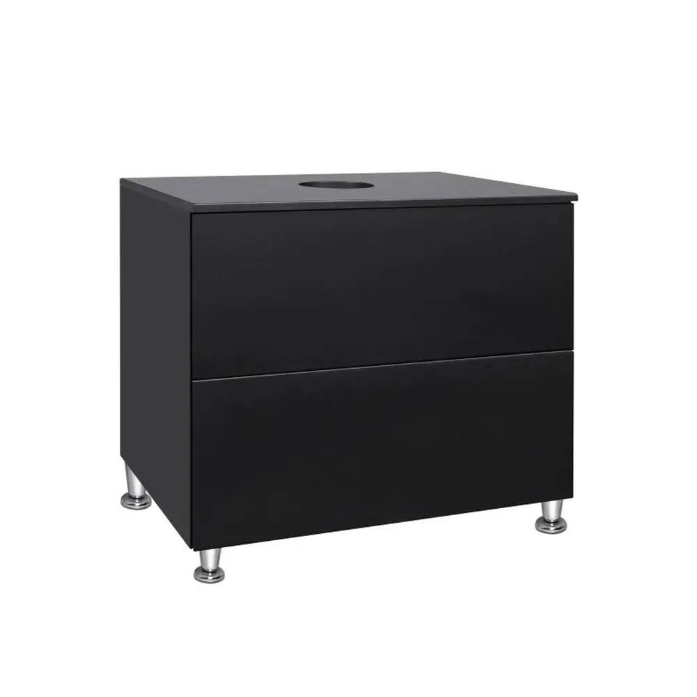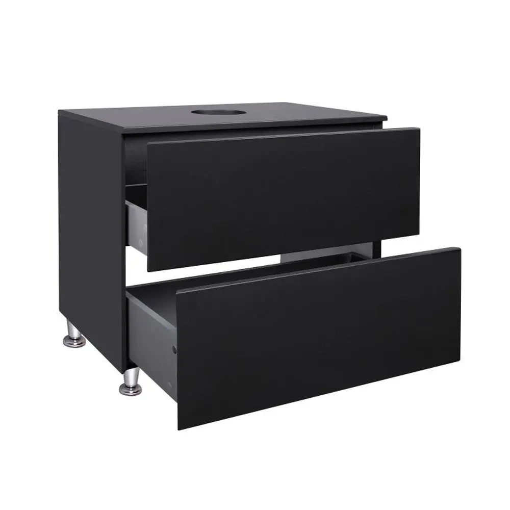 Підлогова тумба Qtap Tern 800х476х469 Matt black зі стільницею QT1780TNL802MB виконана з отвором для встановлення накладної раковини-чаші, а також отвором під сифон. Корпус тумби чорного кольору виготовлений із ЛДСП, фасадна частина із МДФ. Виріб оснащений зручними та місткими висувними ящиками. Завдяки механізму push-to-open ящики відкриваються одним легким натисканням на фасадну частину. Такий виріб стане яскравим доповненням до будь-якої сучасної ванної кімнати.