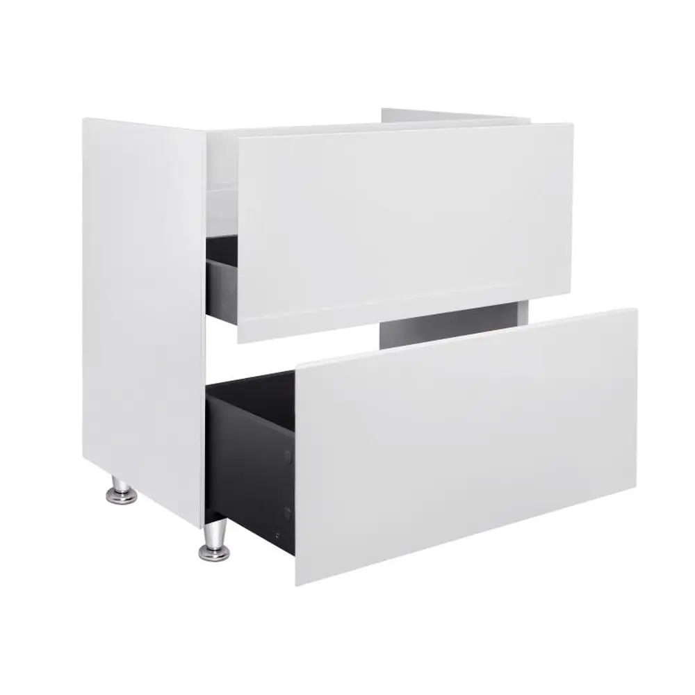 Підлогова тумба Qtap Tern 800х725х437 White QT1773TNL801W виконана в лаконічному стилі, який доповнить дизайн будь-якої ванної кімнати. Корпус тумби білого кольору виготовлений із ЛДСП, фасадна частина із МДФ із глянцевим покриттям. Виріб оснащений зручними та місткими висувними ящиками. Завдяки механізму push-to-open ящики відкриваються одним легким натисканням на фасадну частину. У комплекті чотири стійкі металеві ніжки.