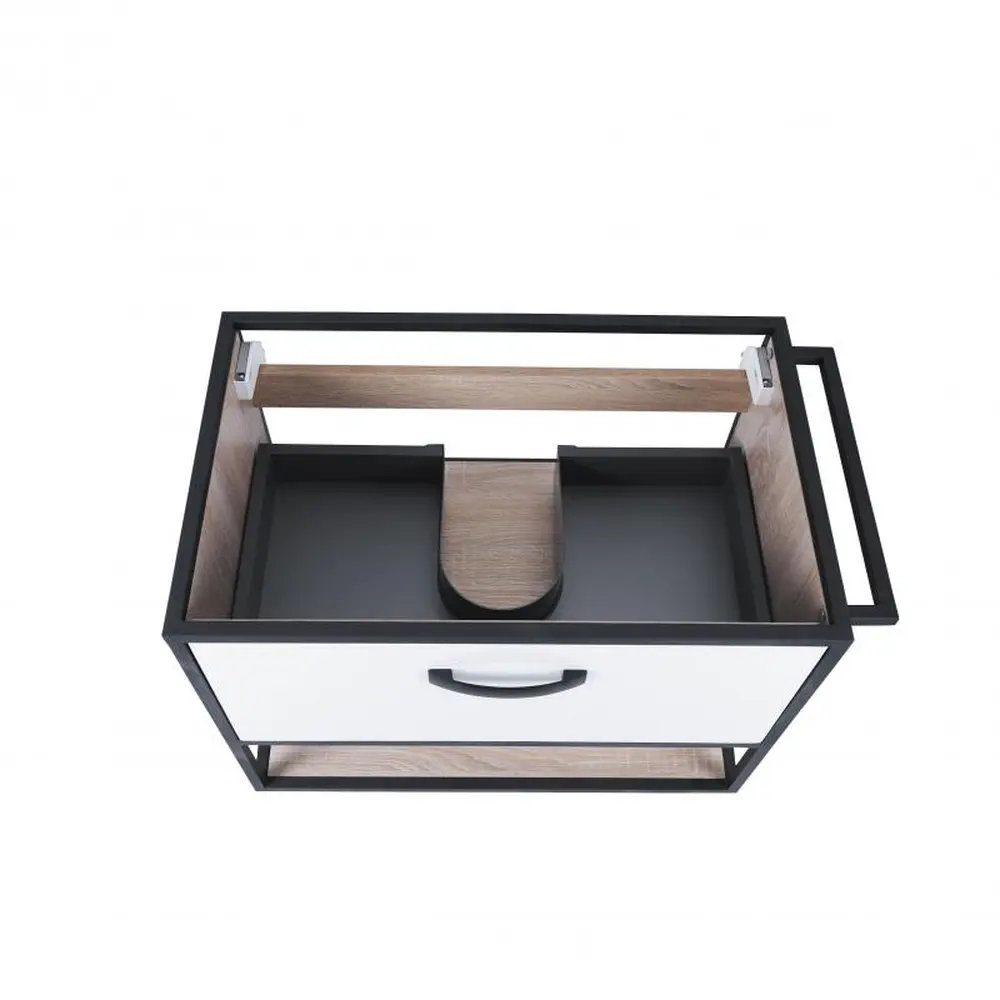 Підвісна тумба Qtap Taurus 700х580х437 White/Whitish oak QT2474TPT703WWO призначена для встановлення урізної раковини. Двоколірний корпус тумби виготовлено з ЛДСП, фасадна частина - з МДФ. Виріб оснащений зручним і містким висувним ящиком з механізмом доведення і полицею. Сталевий фарбований каркас чорного кольору додає тумбі оригінальний зовнішній вигляд, завдяки якому вона впишеться в дизайн будь-якої сучасної ванної кімнати. Підвісна конструкція полегшить прибирання приміщення.