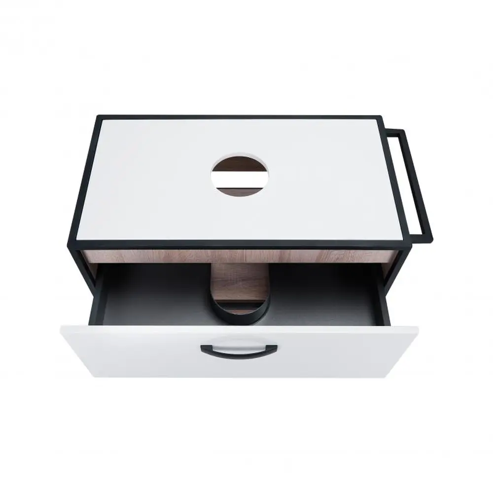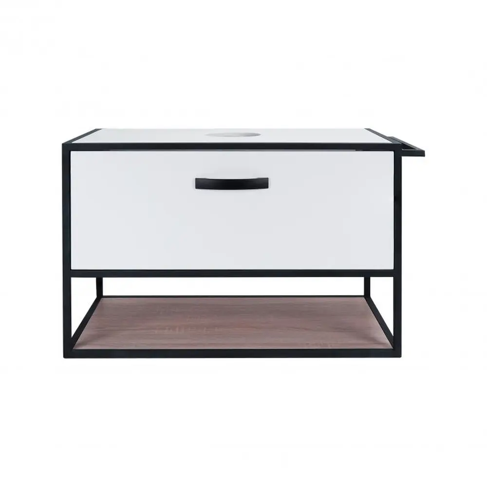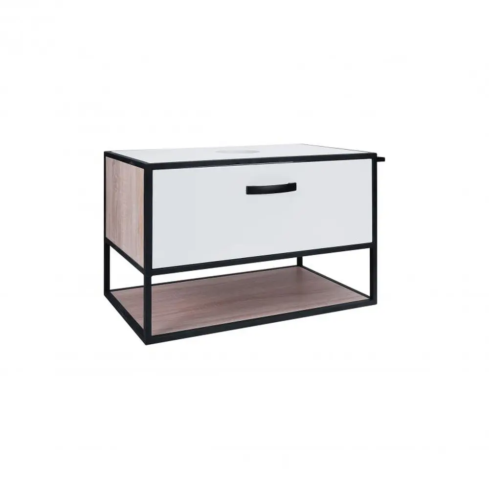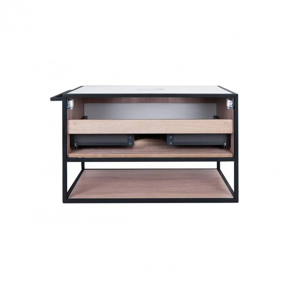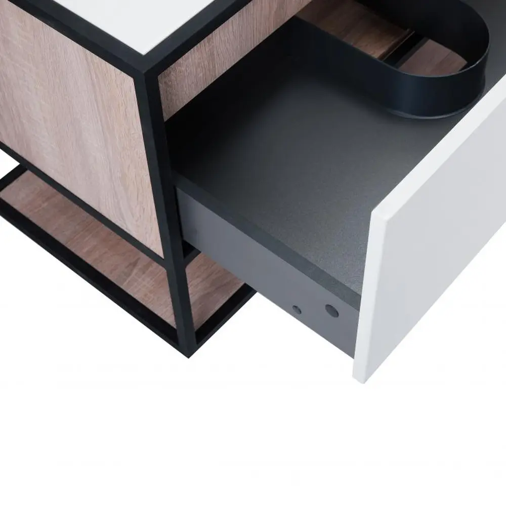 Підвісна тумба Qtap Taurus 800х476х469 White/Whitish oak зі стільницею QT2479TPT803WWO виконана з отвором для встановлення накладної раковини, а також отвором під сифон. Двоколірний корпус тумби виготовлений з ЛДСП, фасадна частина - з МДФ. Виріб оснащений зручними і містким висувним ящиком з механізмом доведення і полицею. Сталевий фарбований каркас чорного кольору додає тумбі оригінальний зовнішній вигляд, завдяки якому вона підійде до дизайну будь-якої сучасної ванної кімнати.