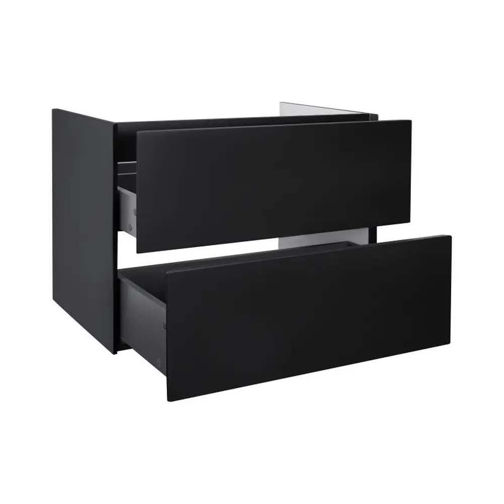 Підвісна тумба Qtap Tern 800х725х437 Matt black QT1774TPL802MB виконана з отвором під сифон. Корпус тумби чорного кольору виготовлений із ЛДСП, фасадна частина із МДФ з матовим покриттям. Виріб оснащений зручними та місткими висувними ящиками. Завдяки механізму push-to-open ящики відкриваються одним легким натисканням на фасадну частину. Підвісна конструкція тумби полегшить прибирання приміщення. Тумба виконана в елегантному стилі, що впишеться в дизайн будь-якої ванної кімнати.