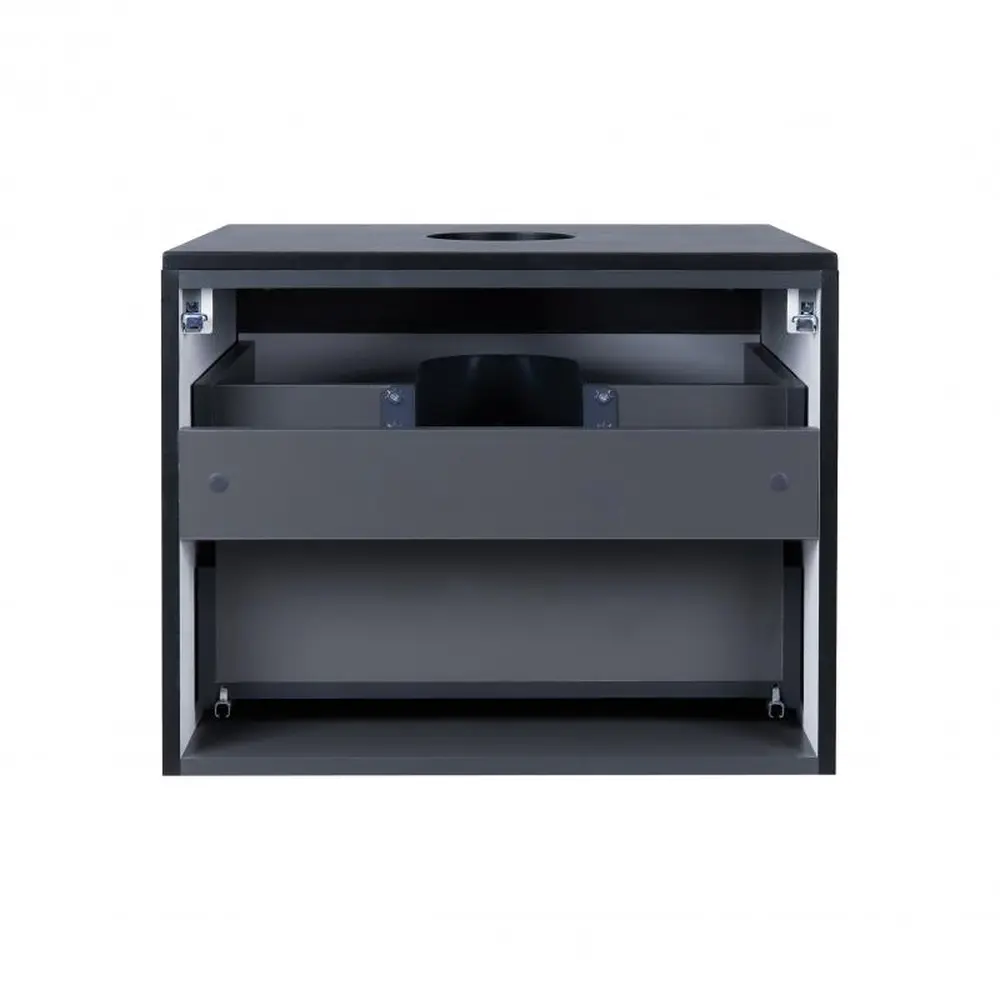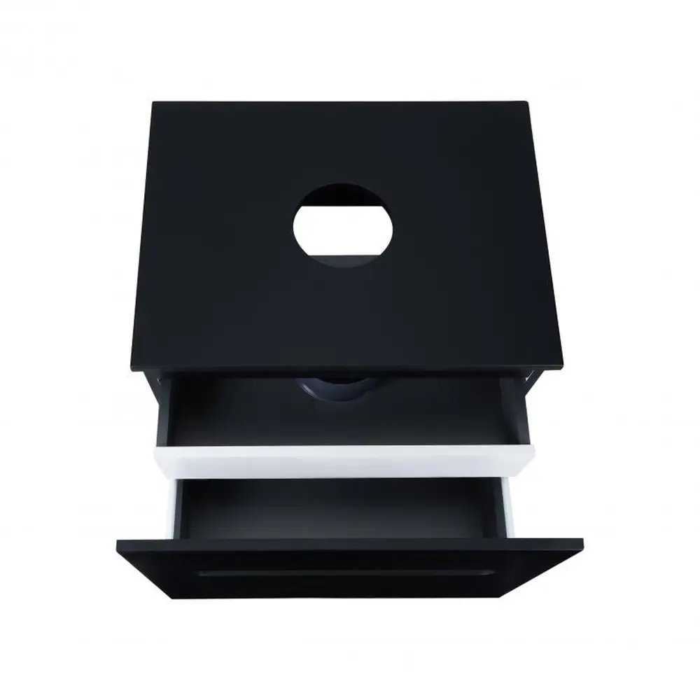 Підвісна тумба Qtap Virgo 600х476х469 Black/White зі стільницею QT1879TPА602BW виконана з отвором для встановлення накладної раковини, а так же отвором під сифон. Корпус тумби чорного кольору виготовлений з ЛДСП, фасадна частина - з МДФ. Виріб оснащений зручними і місткими висувними ящиками з механізмом доведення. Прихований внутрішній ящик білого кольору надає тумбі оригінальний зовнішній вигляд, завдяки якому вона впишеться в дизайн будь-якої сучасної ванної кімнати.