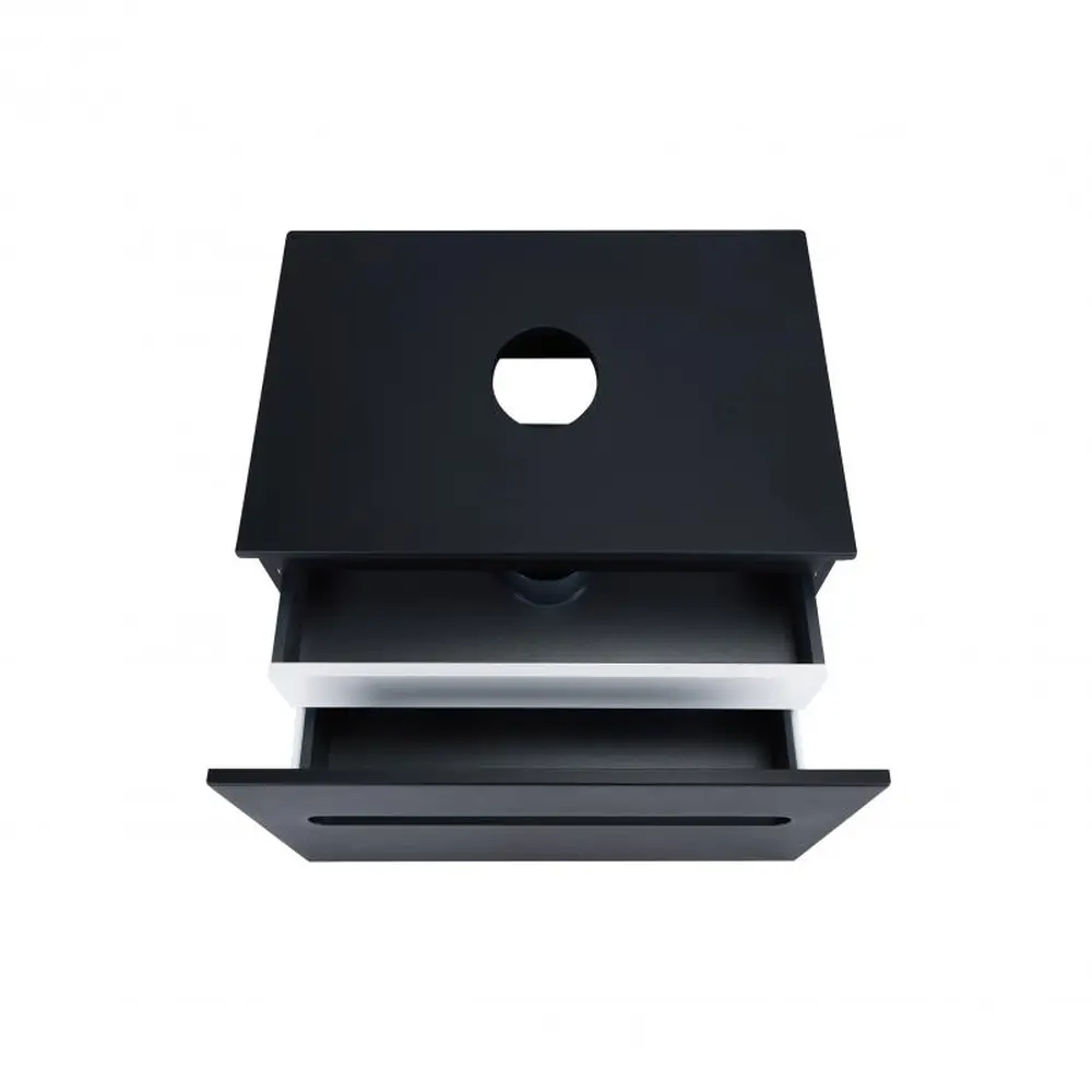 Підвісна тумба Qtap Virgo 700х476х469 Black/White зі стільницею QT1879TPА702BW виконана з отвором для встановлення накладної раковини, а так же отвором під сифон. Корпус тумби чорного кольору виготовлений з ЛДСП, фасадна частина - з МДФ. Виріб оснащений зручними і місткими висувними ящиками з механізмом доведення. Прихований внутрішній ящик білого кольору надає тумбі оригінальний зовнішній вигляд, завдяки якому вона впишеться в дизайн будь-якої сучасної ванної кімнати.