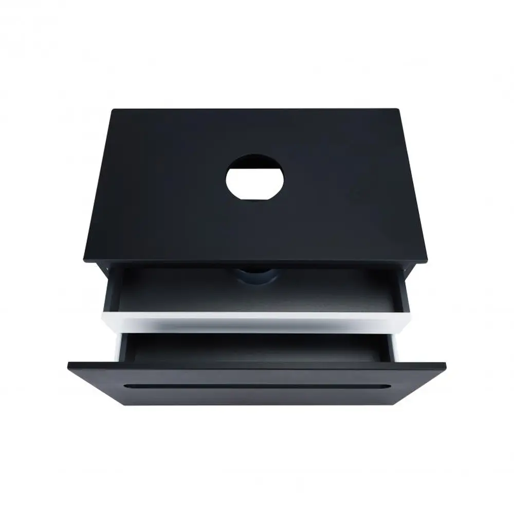Підвісна тумба Qtap Virgo 800х476х469 Black/White зі стільницею QT1879TPА802BW виконана з отвором для встановлення накладної раковини, а так же отвором під сифон. Корпус тумби чорного кольору виготовлений з ЛДСП, фасадна частина - з МДФ. Виріб оснащений зручними і місткими висувними ящиками з механізмом доведення. Прихований внутрішній ящик білого кольору надає тумбі оригінальний зовнішній вигляд, завдяки якому вона впишеться в дизайн будь-якої сучасної ванної кімнати.