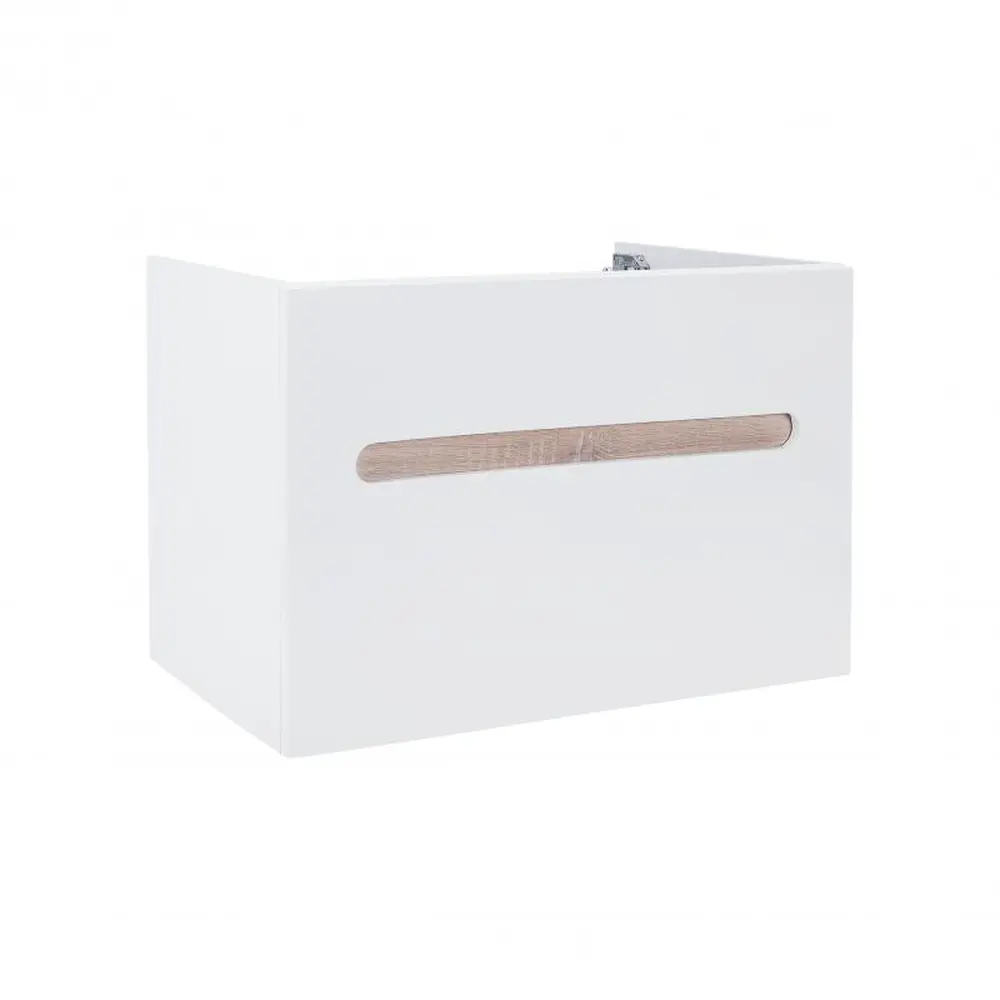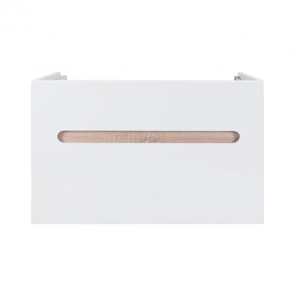 Підвісна тумба Qtap Virgo 800х580х437 White/Whitish oak QT1874TPА801W виконана з отвором під сифон. Корпус тумби білого кольору виготовлений з ЛДСП, фасадна частина - з МДФ. Виріб оснащений місткими висувними ящиками з механізмом доведення. Тумба виконана в елегантному лаконічному стилі і доповнить дизайн будь-якої ванної кімнати. Внутрішній ящик виконаний в кольорі білий дуб - це надає виробу оригінальний зовнішній вигляд. Завдяки підвісній конструкції прибирання приміщення не завдасть клопоту.