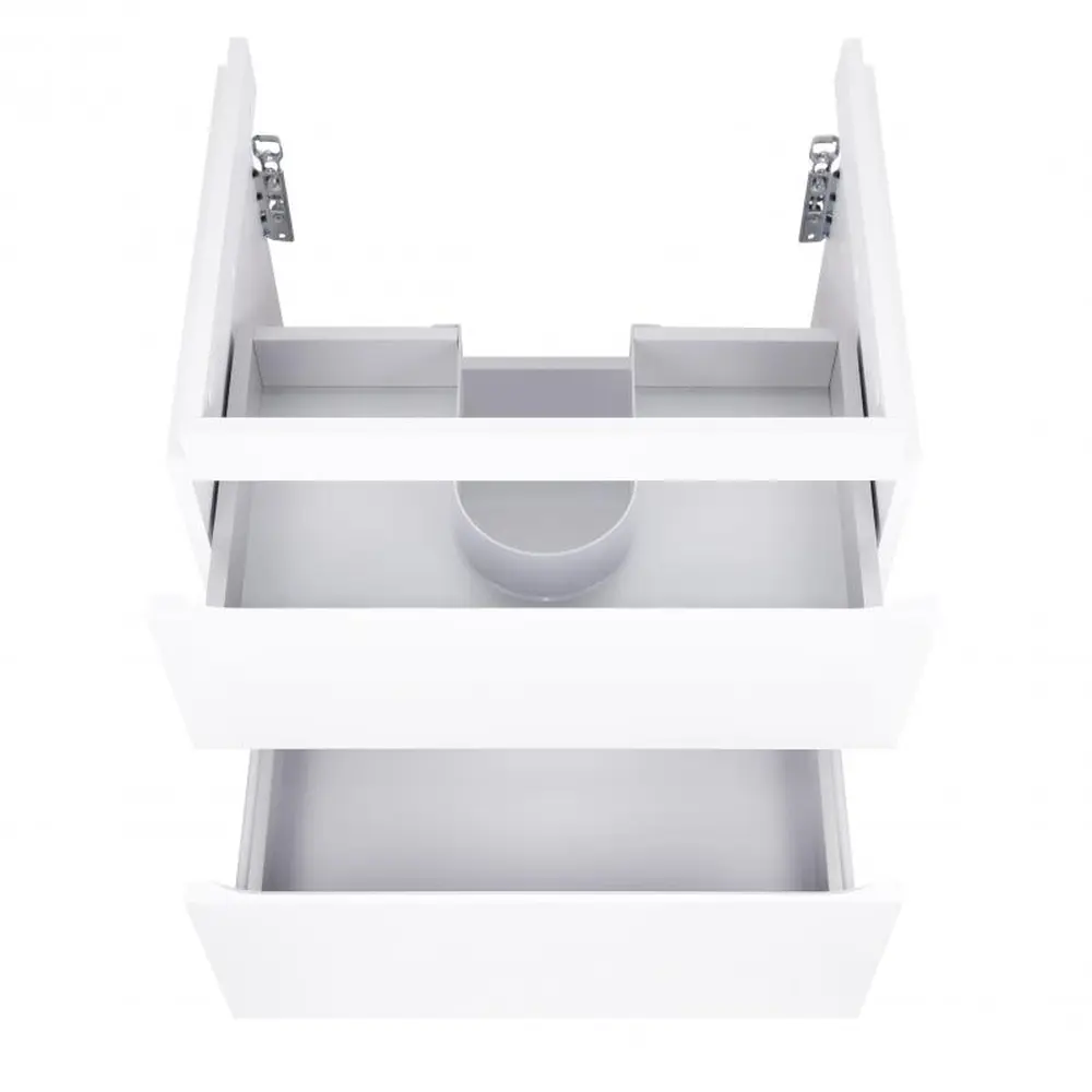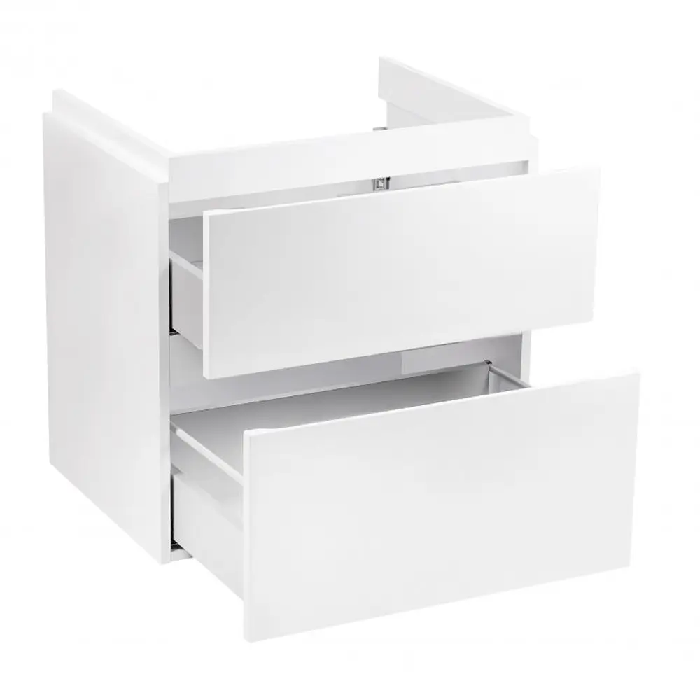 Підвісна тумба Qtap Albatross QT0174TP600DW виконана з отвором під сифон. Корпус тумби виготовлений з ДСП, з двошаровою ламінацією білого кольору, фасадна частина з МДФ з глянцевим покриттям. Виріб оснащений двома зручними і місткими висувними ящиками з механізмом доводчика. Тумба виконана в елегантному лаконічному стилі, який доповнить раковину і впишеться в дизайн будь-якої ванної кімнати. Завдяки підвісній конструкції прибирання приміщення не додасть зайвого клопоту.