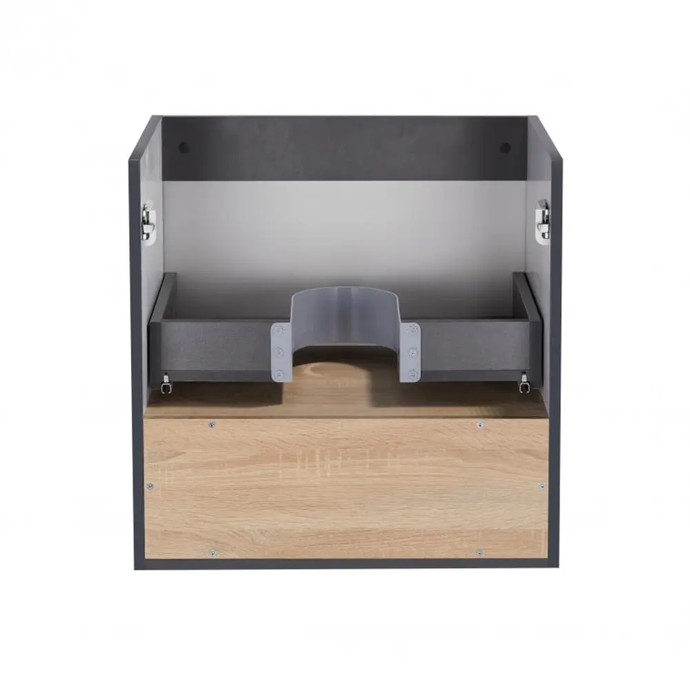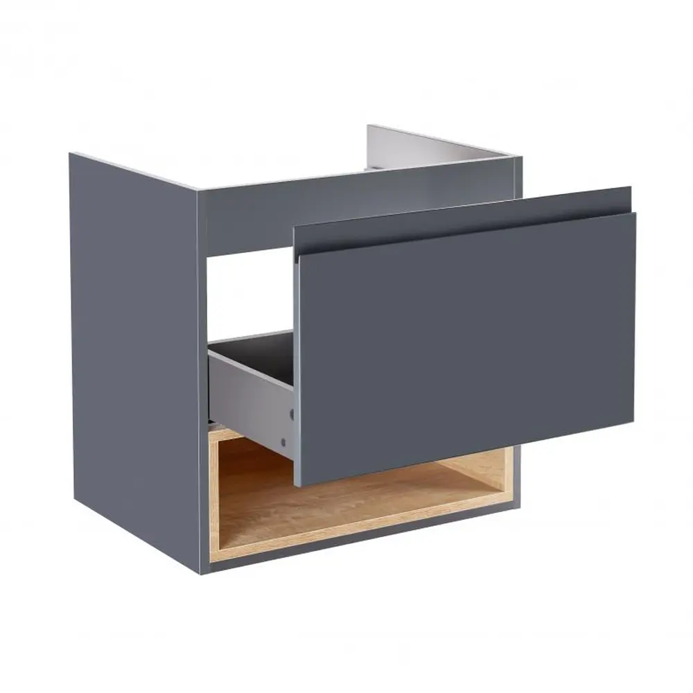 Підвісна тумба Qtap Robin QT1374TPВ6002GWO виконана з отвором під сифон. Корпус тумби сірого кольору виготовлений з ЛДСП, фасадна частина - з МДФ з глянцевим покриттям. Виріб оснащений зручним і містким висувним ящиком з механізмом доводчика, а також стильною полицею кольору білого дуба. Тумба виконана в елегантному лаконічному стилі і впишеться в дизайн будь-якої ванної кімнати. Завдяки підвісній конструкції прибирання приміщення не завдасть зайвого клопоту.