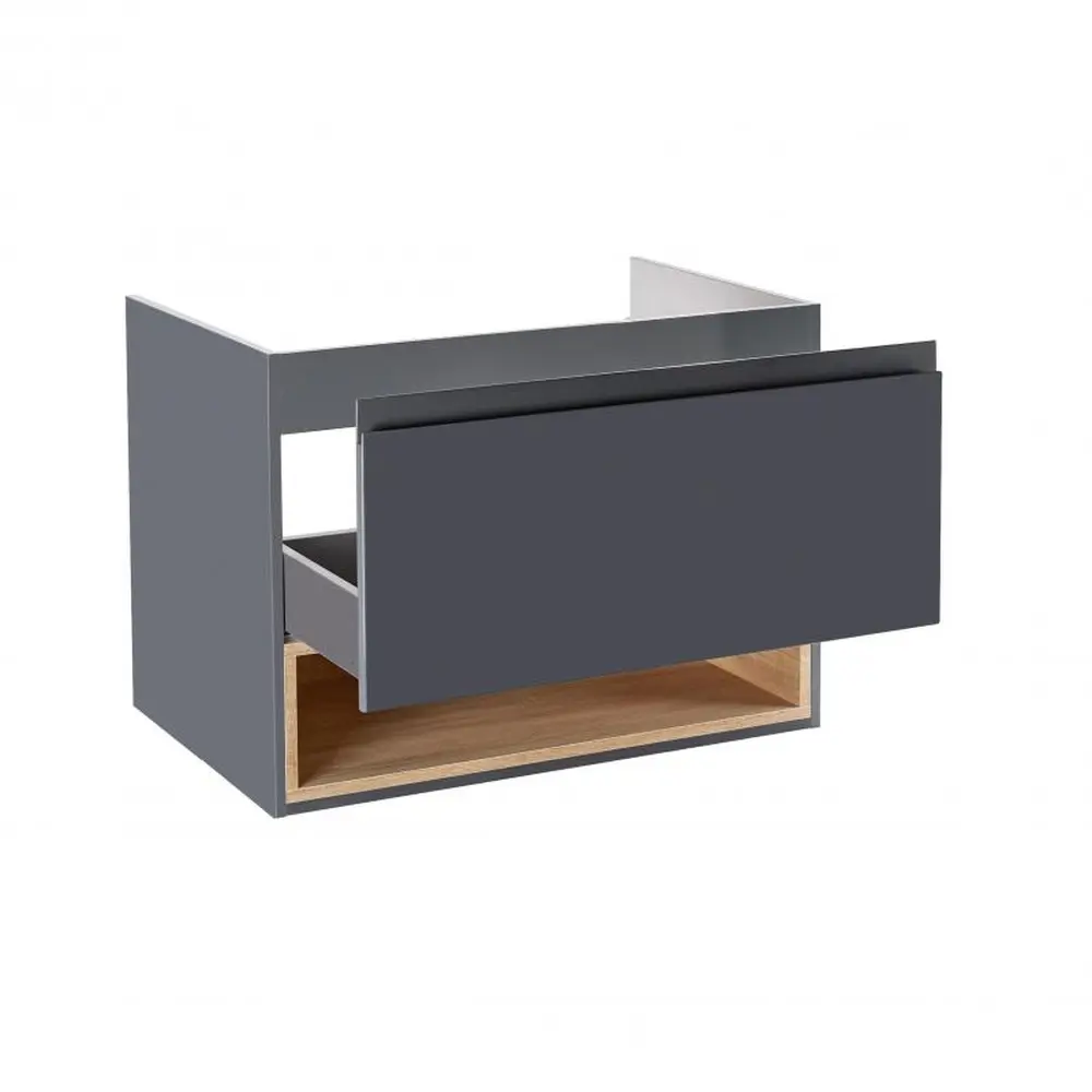 Підвісна тумба Qtap Robin QT1374TPВ8002NGWO виконана в лаконічному стилі, що доповнить дизайн будь-якої ванної кімнати. Корпус тумби сірого кольору виготовлений з ЛДСП, фасадна частина - з МДФ з глянцевим покриттям. Виріб оснащений зручним і містким висувним ящиком з механізмом доведення, а також стильною полицею кольору білого дуба.