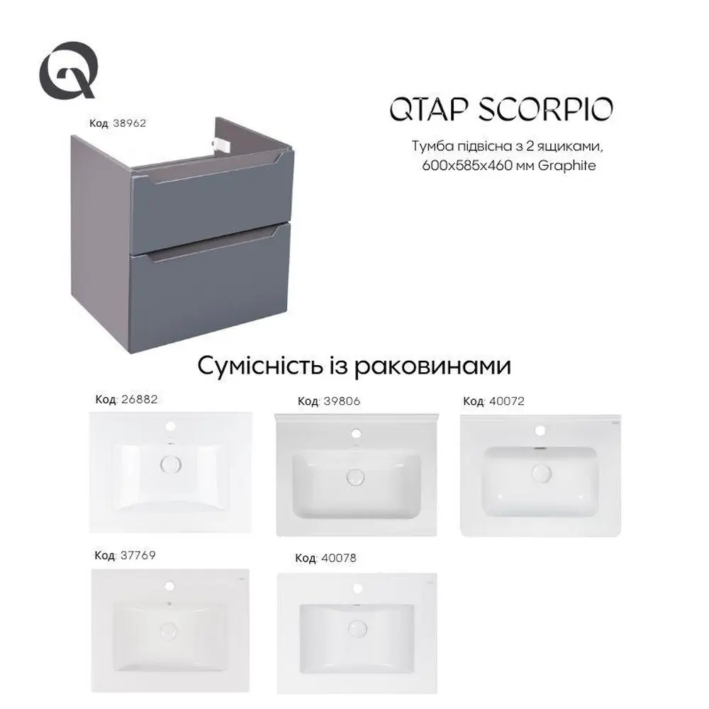 Сумісність із раковинами дивіться у вкладці "Додатково"
