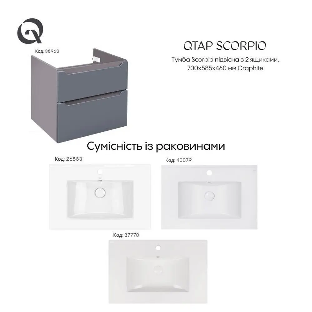 Сумісність із раковинами дивіться у вкладці "Додатково"