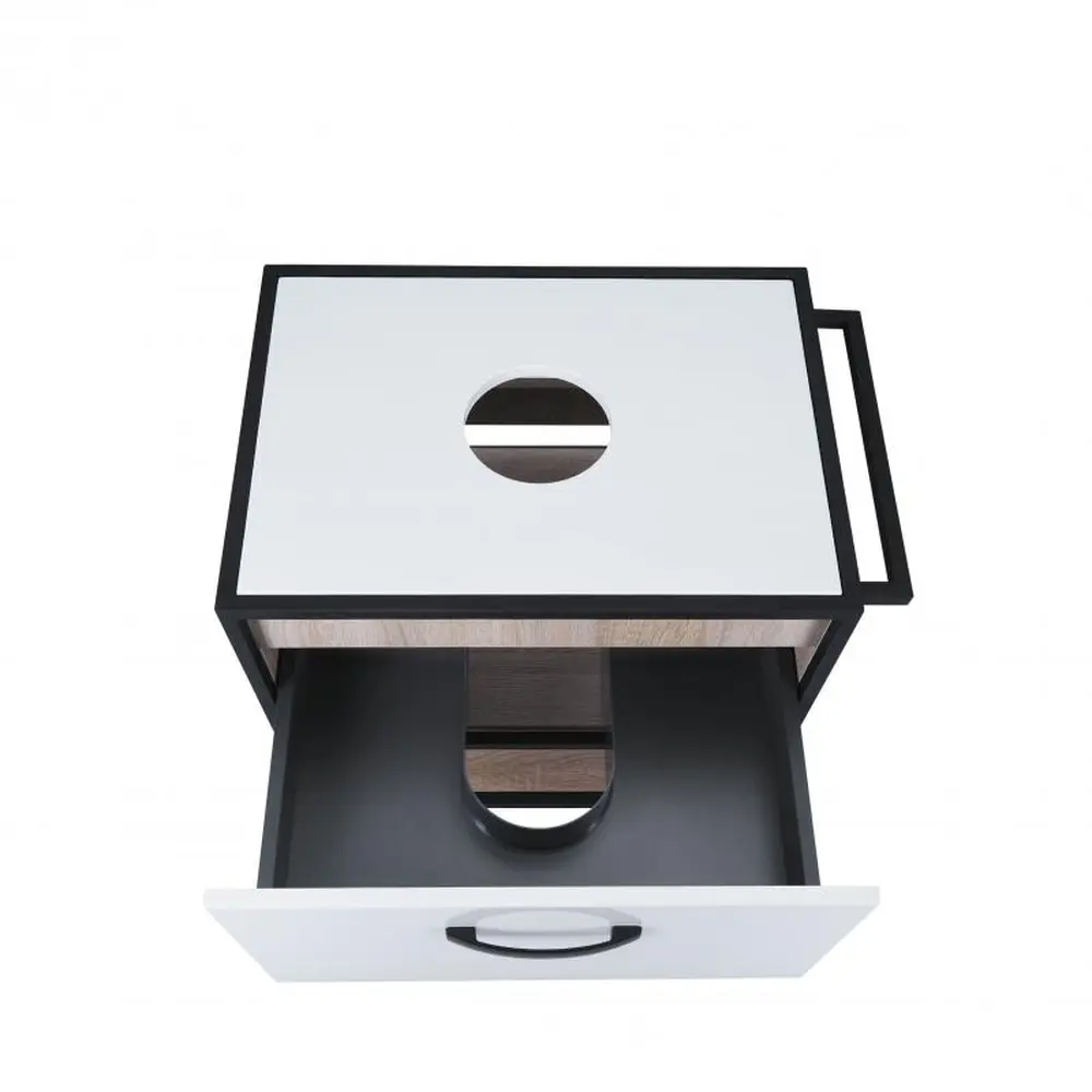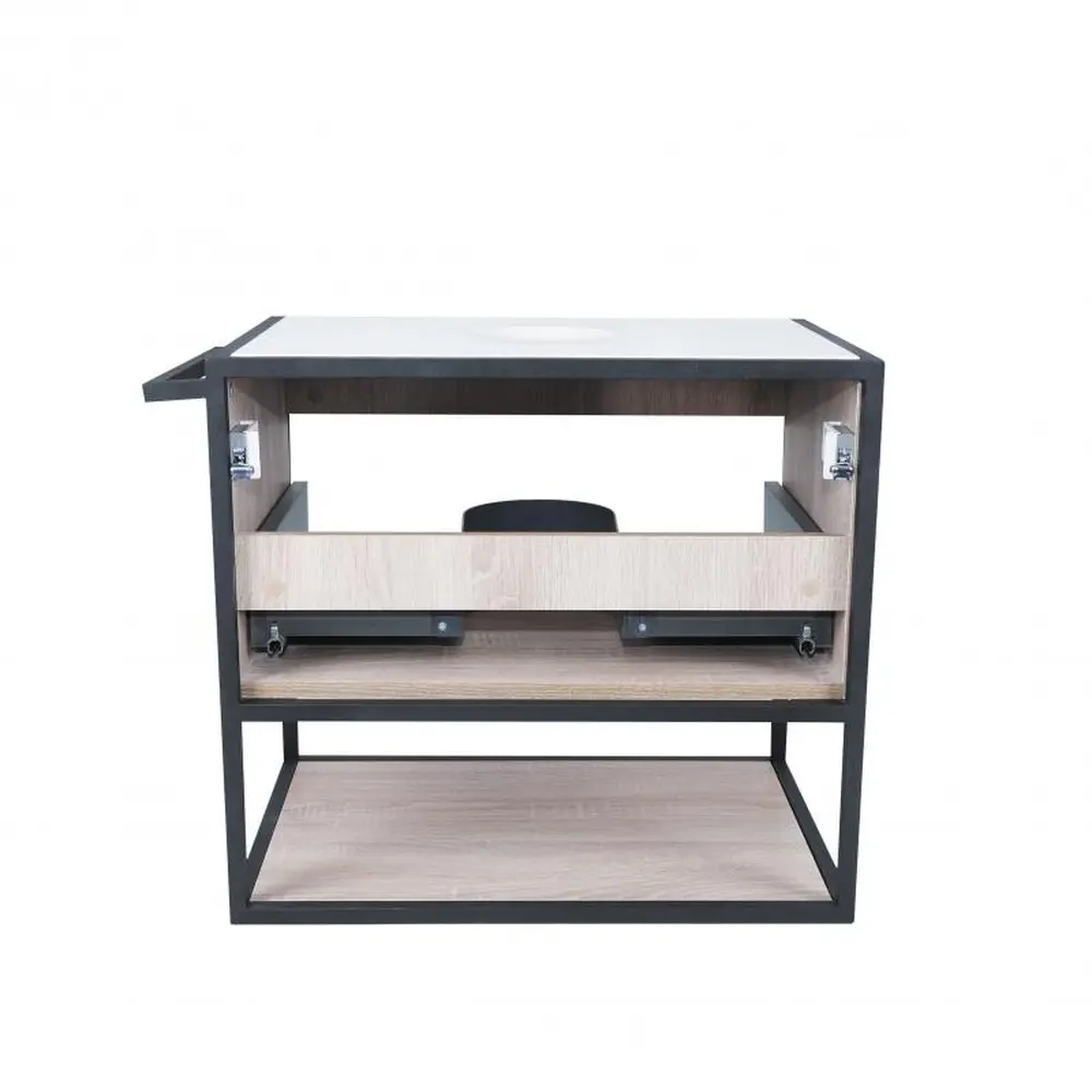 Підвісна тумба Qtap Taurus 600х476х469 White/Whitish oak зі стільницею QT2479TPT603WWO виконана з отвором для встановлення накладної раковини, а також отвором під сифон. Двоколірний корпус тумби виготовлений з ЛДСП, фасадна частина - з МДФ. Виріб оснащений зручними і містким висувним ящиком з механізмом доведення і полицею. Сталевий фарбований каркас чорного кольору додає тумбі оригінальний зовнішній вигляд, завдяки якому вона підійде до дизайну будь-якої сучасної ванної кімнати.