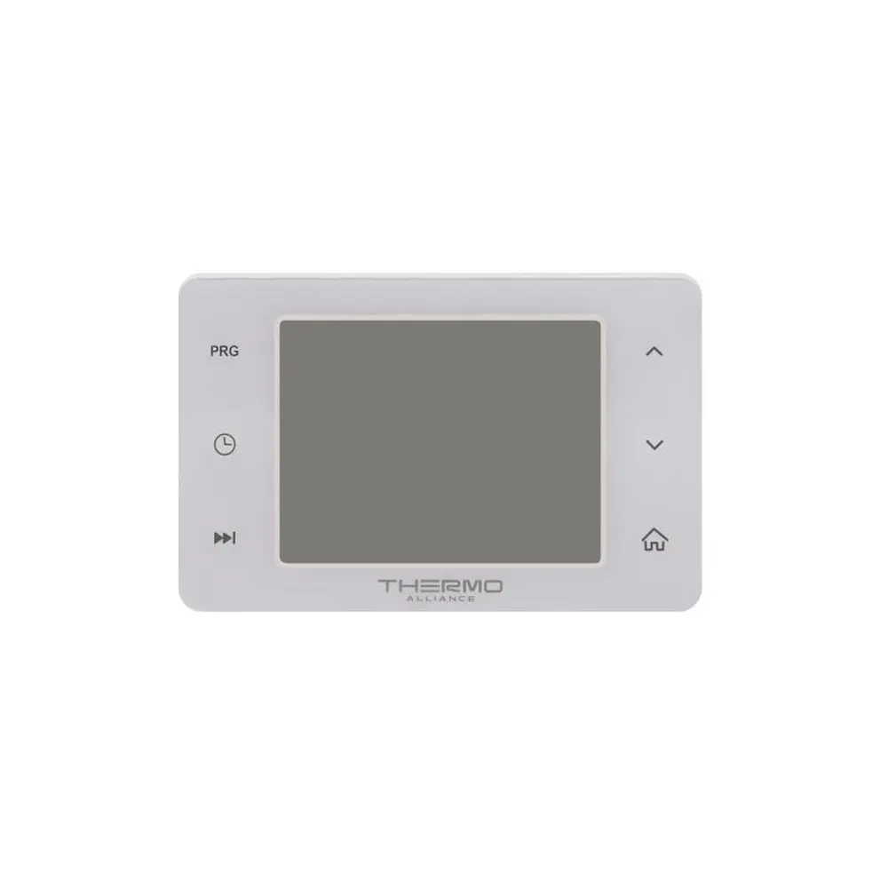 Тижневий програмований термостат Thermo Alliance ТА-2701 підключається до котла за допомогою кабелю та керує процесами увімкнення/вимкнення опалювального приладу за "Сухим Каналом". Блок кімнатного термостата використовується як графічний інтерфейс користувача для визначення та контролю температури в приміщенні. Оскільки відстань від кімнатного термостата до котла в різних приміщеннях відрізнятиметься, кабель підключення не входить до комплекту постачання продукції.