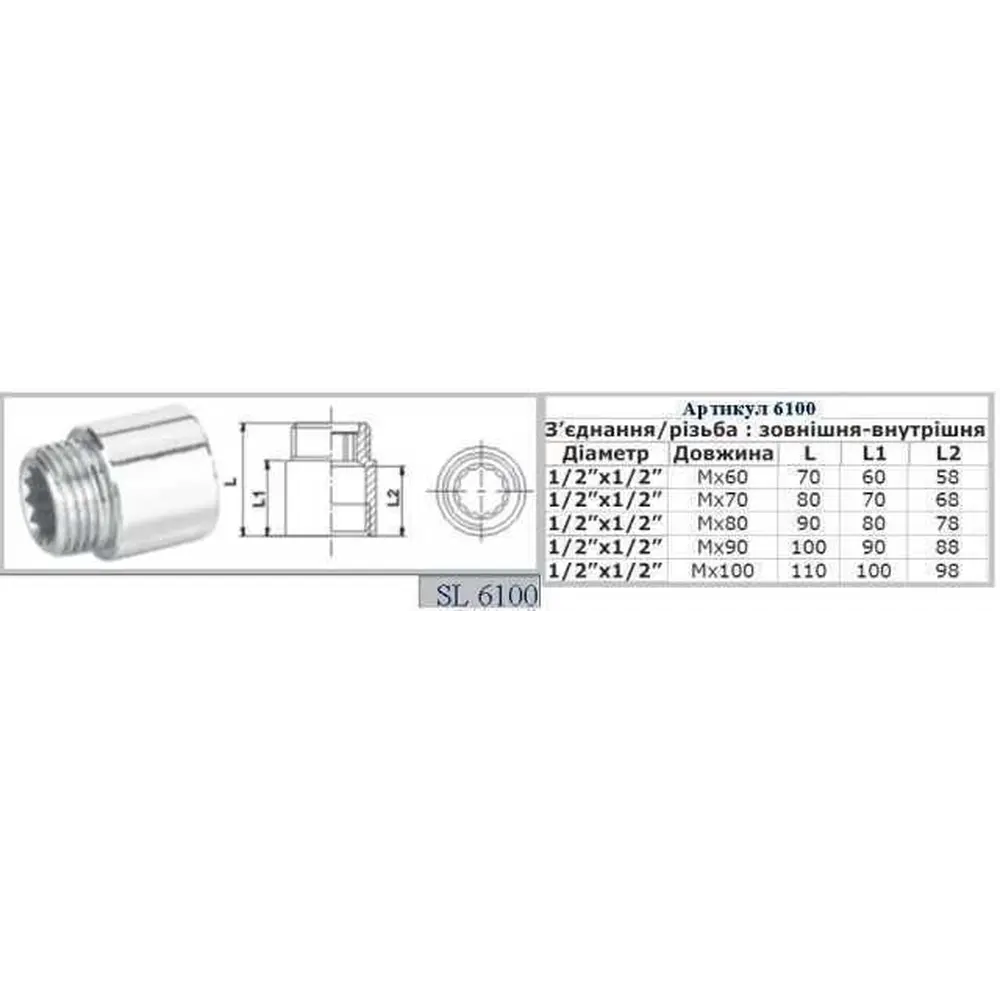 Подовжувач 1/2 ", 70мм, ХРОМ SL6100 SELBA Germany