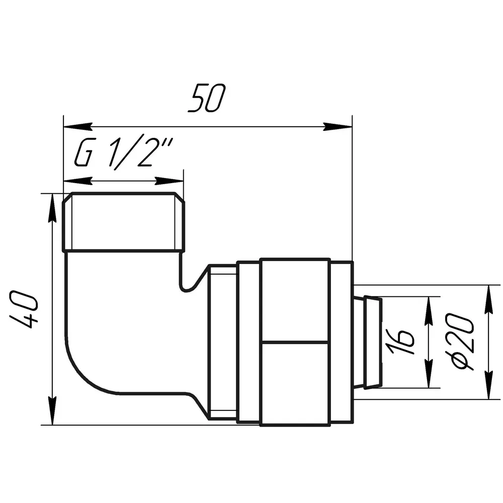 Кутник із зовнішньою різьбою APE ITALY 753 L 1/2х20