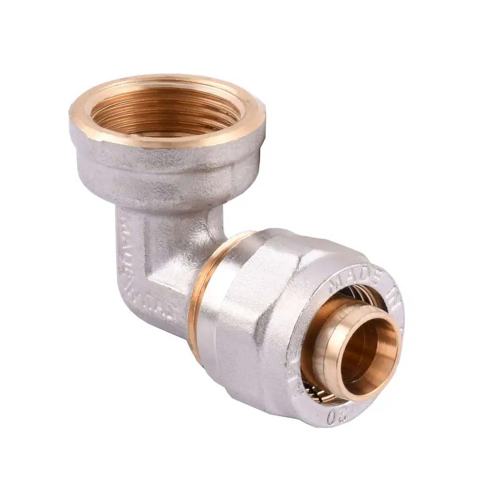 Кути з внутрішнім різьбленням серії 752 L були спроектовані і реалізовані для надання допомоги установника, скорочуючи час на монтаж і збільшуючи характеристики стійкості в часі. Крім того, дана серія фітингів не вимагає особливих інструментів для монтажу Стійкість кріплення між трубою і фитингом гарантується одночасним наявністю двох кілець ущільнювачів (2), розташованих в ялинці (6) і особливою, противоскользящей, формою самої ялинки (у вигляді зубів пилки). Кріплення труби відбувається за рахунок особливого виду пресування, що складається з радіального пресування, отриманого за рахунок загвинчування гайки (7) яка визначає стиснення розрізаної ожівальной частини (5) навколо труби і осьового пресування, яке стискає кільце ущільнювача (4) на корпусі. Подібна система пресування гарантує стійкість отриманого зєднання в будь-яких умовах роботи. Крім того, працюючи на латуні в пресуванні, виключаються ризики виникнення мікротріщин. Наявність шайби (3) з PTFE ізолює алюміній труби від латуні фитинга для уникнення виникнення корозійних ефектів