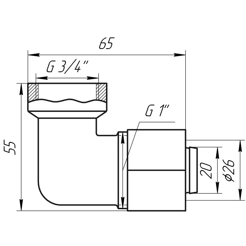 Кутник із внутрішньою різьбою APE ITALY 752 L 3/4х26