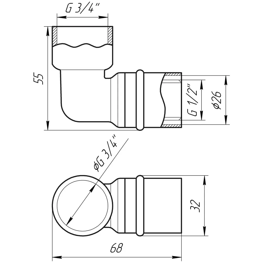 Габарити: 26 * 3/4 на 26 металопластикових труб
