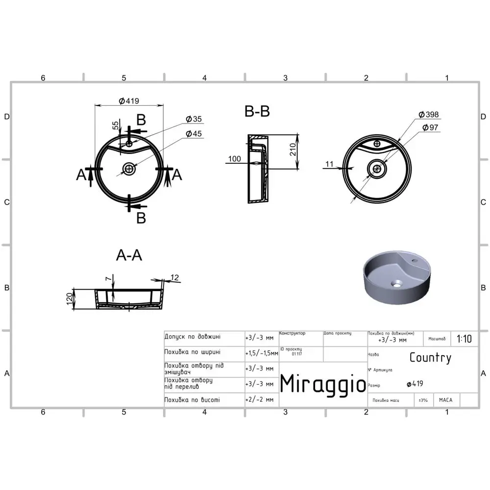 Умивальник COUNTRY MATT MIRAGGIO зі штучного каменю - це практичне рішення для санвузла дому, готелю чи дачі.