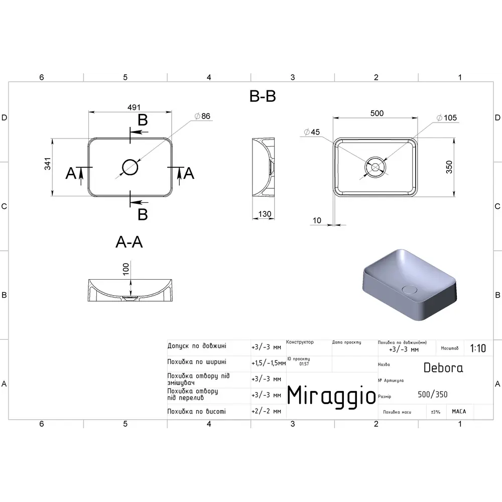 Умивальник DEBORA MIRASOFT MIRAGGIO зі штучного каменю - це практичне рішення для санвузла дому, готелю чи дачі.