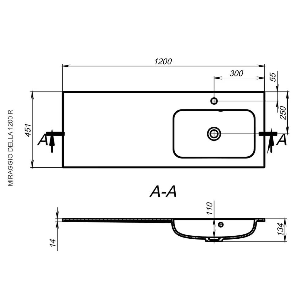 Умивальник DELLA 1200 R MATT MIRAGGIO зі штучного каменю - це практичне рішення для санвузла дому, готелю чи дачі.