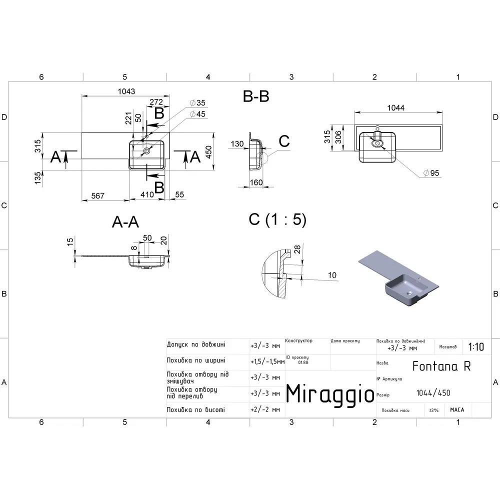 Умивальник FONTANA R MIRASOFT MIRAGGIO зі штучного каменю - це практичне рішення для санвузла дому, готелю чи дачі.