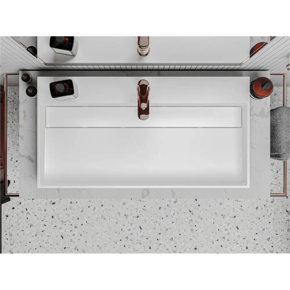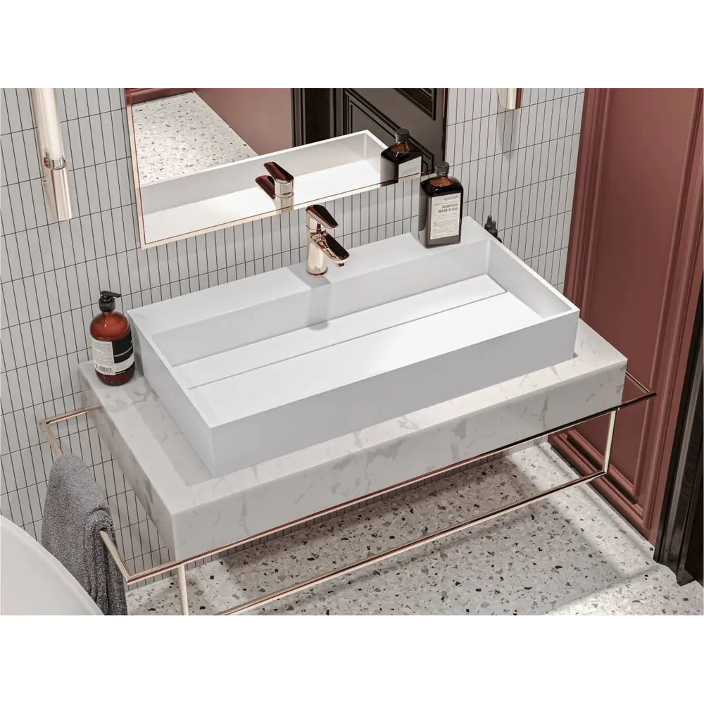 Прямокутна форма раковини гармонійно доповнить дизайн сучасної ванної кімнати.