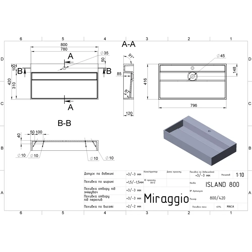 Умивальник ISLAND 800 MIRAGGIO зі штучного каменю - це практичне рішення для санвузла дому, готелю чи дачі.
