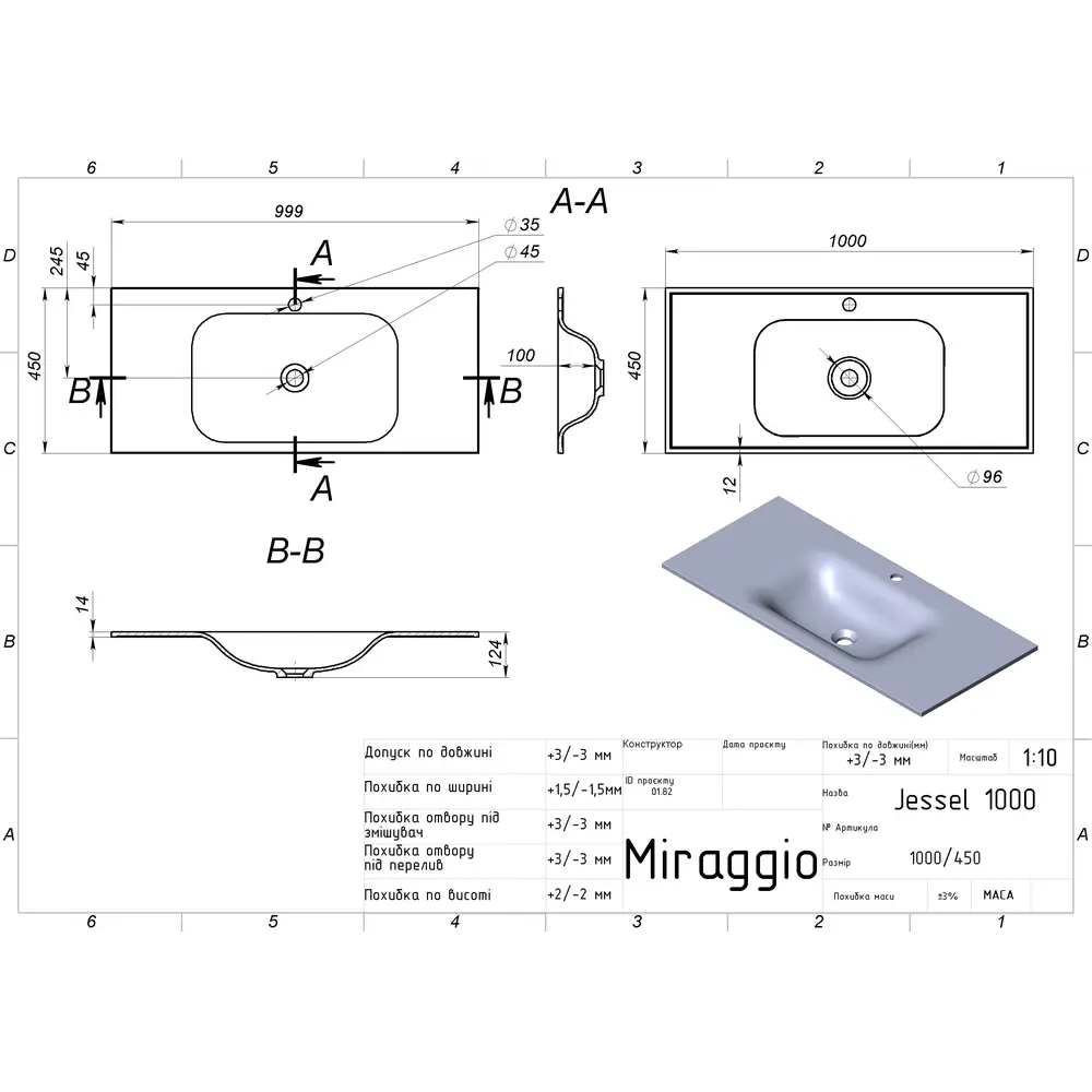 Умивальник JESSEL 1000 MIRAGGIO зі штучного каменю - це практичне рішення для санвузла дому, готелю чи дачі.