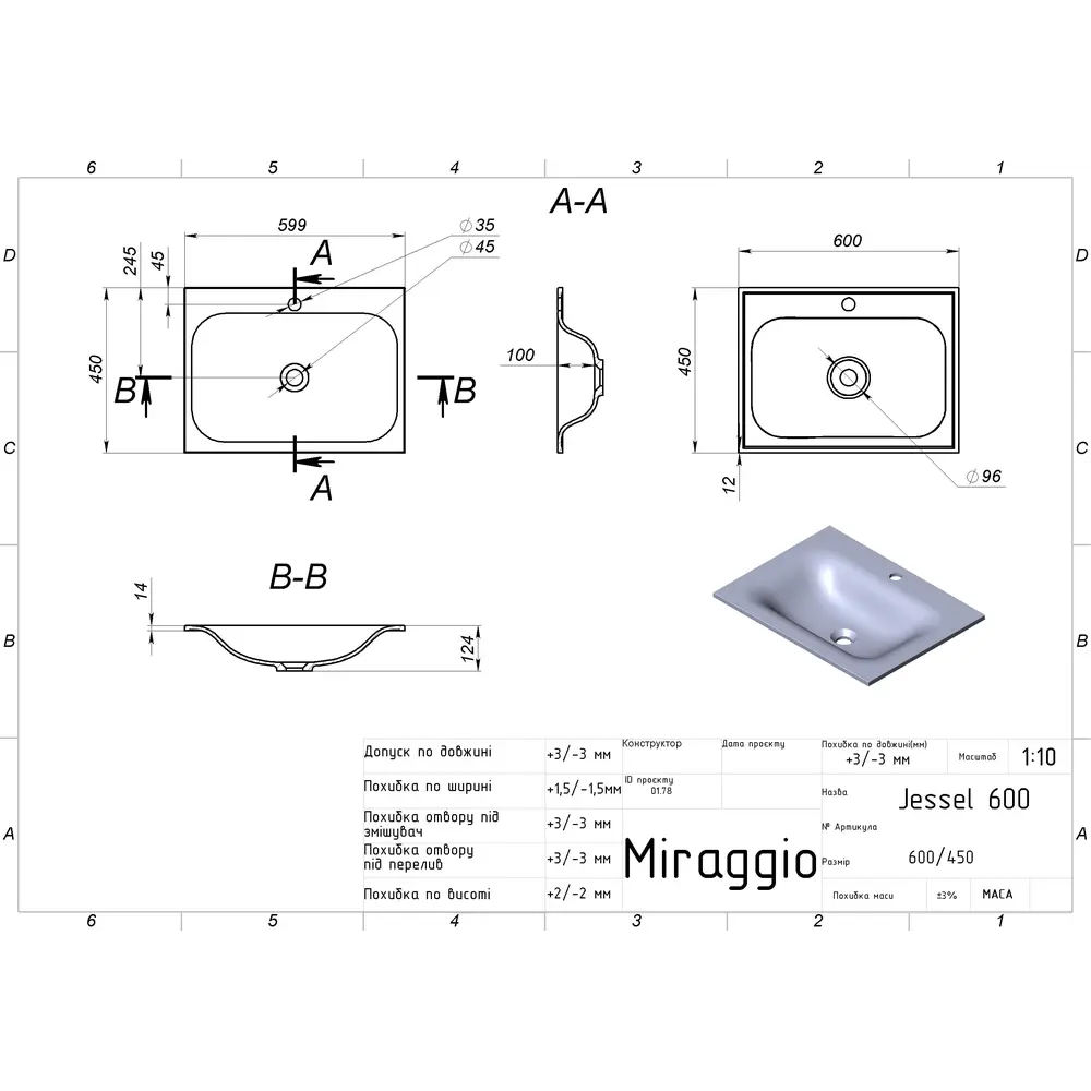 Умивальник JESSEL 600 MIRAGGIO зі штучного каменю - це практичне рішення для санвузла дому, готелю чи дачі.
