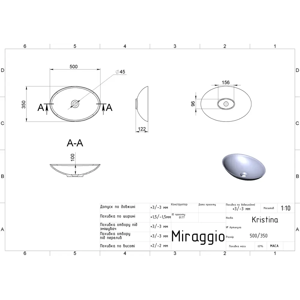 Умивальник KRISTINA MATT MIRAGGIO зі штучного каменю - це практичне рішення для санвузла дому, готелю чи дачі.