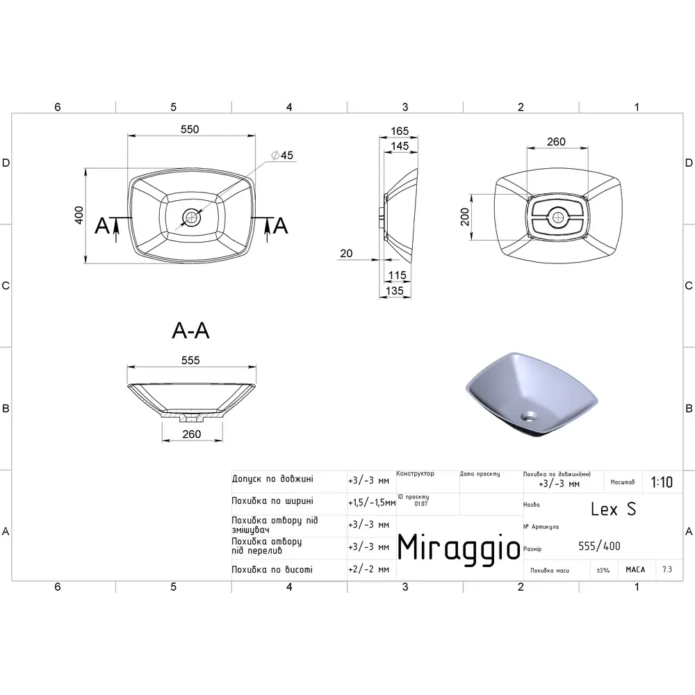 Умивальник LEX S MATT MIRAGGIO зі штучного каменю - це практичне рішення для санвузла дому, готелю чи дачі.