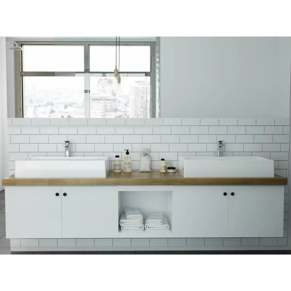 Прямокутна форма раковини гармонійно доповнить дизайн сучасної ванної кімнати.