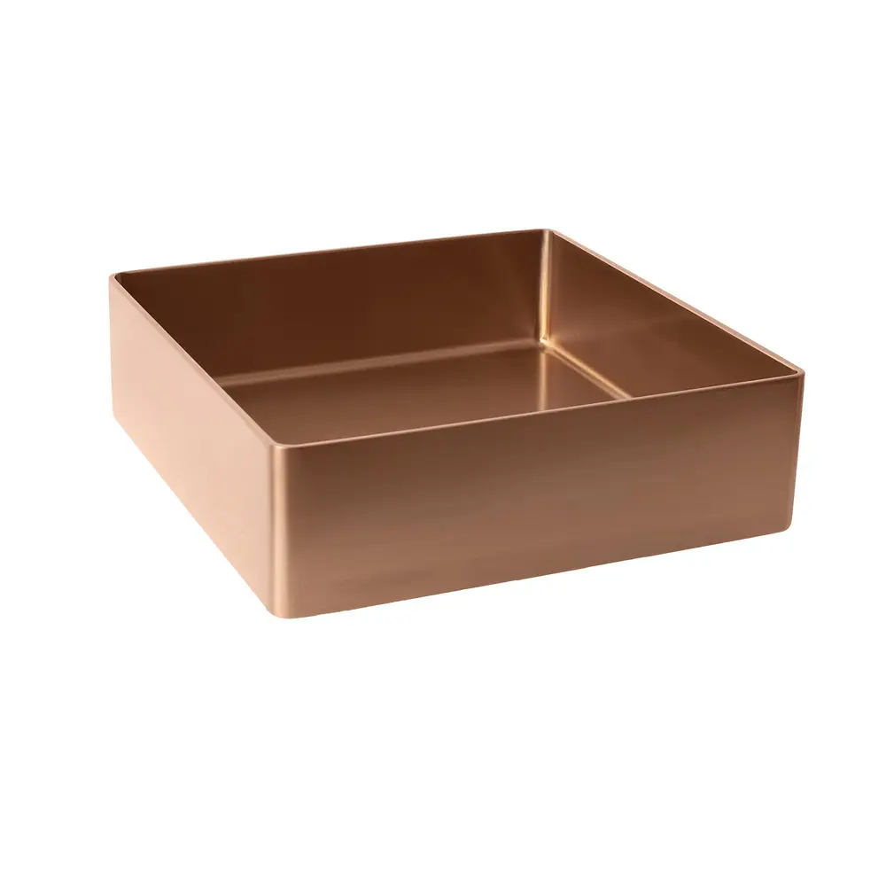 Умивальник 40*40 Platinum Handmade PVD мідний (400x400x110 мм) це відмінне стильне рішення для кімнат невеликих розмірів. Лаконічний дизайн квадратної форми добре пасує різним інтер’єрам.