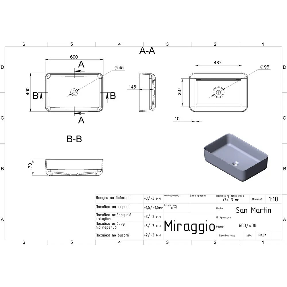 Умивальник SAN MARTIN MIRAGGIO зі штучного каменю - це практичне рішення для санвузла дому, готелю чи дачі.