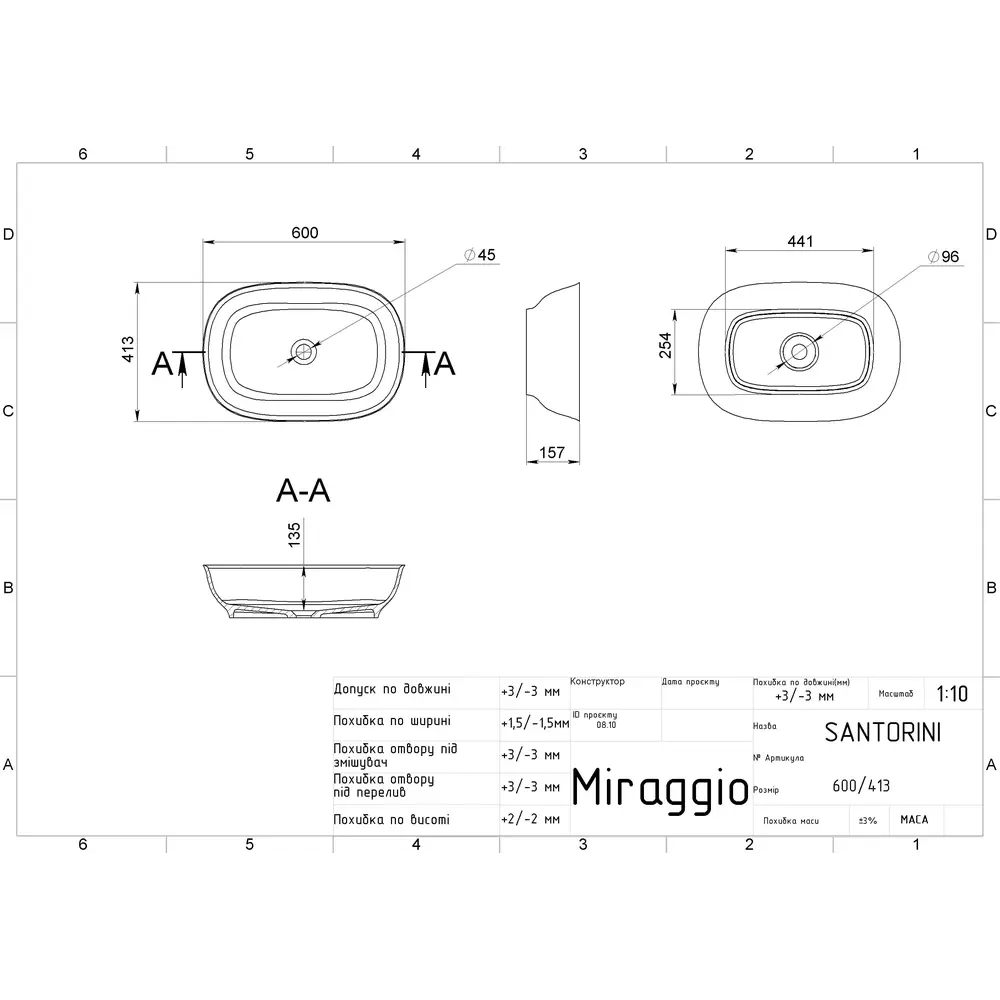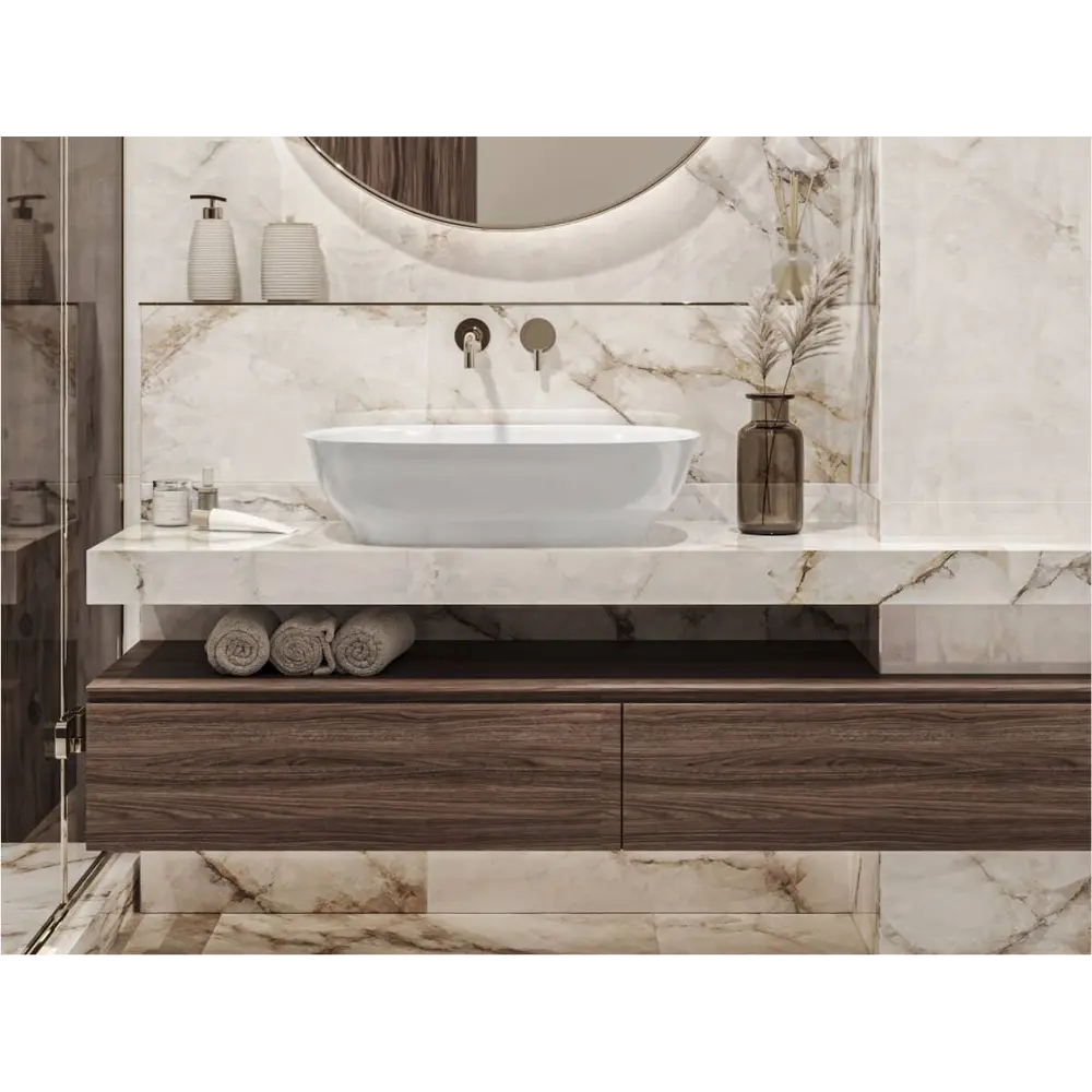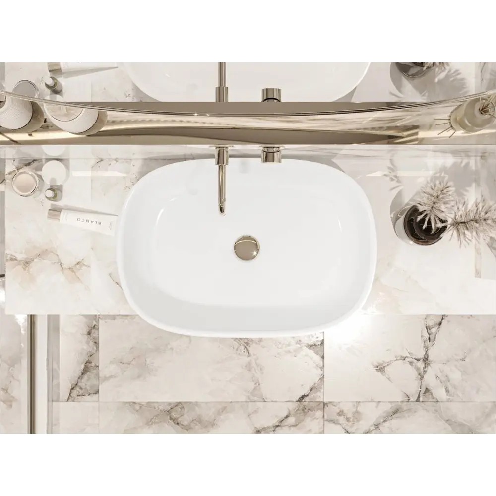 Умивальник SANTORINI MIRAGGIO зі штучного каменю - це практичне рішення для санвузла дому, готелю чи дачі.