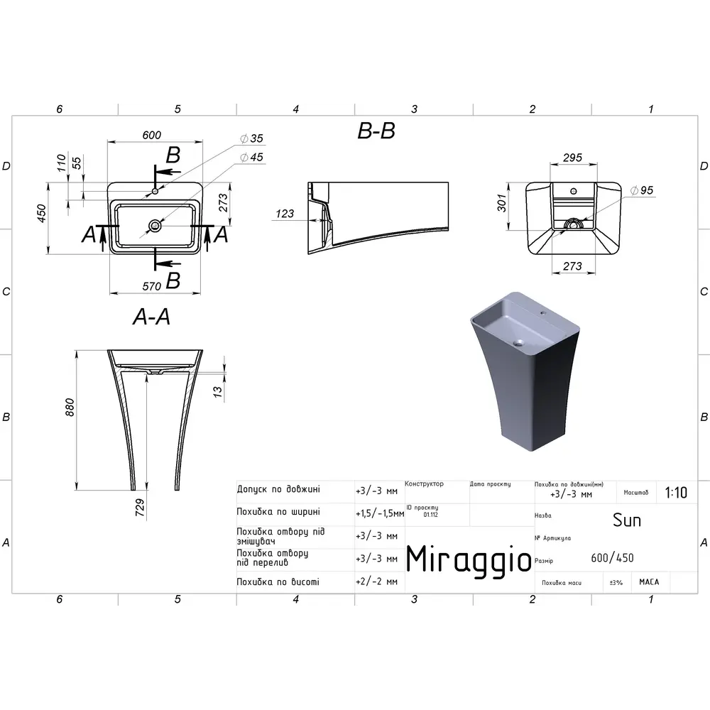 Умивальник SUN MIRAGGIO зі штучного каменю - це практичне рішення для санвузла дому, готелю чи дачі.