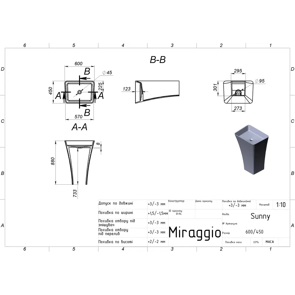Умивальник SUNNY MIRAGGIO зі штучного каменю - це практичне рішення для санвузла дому, готелю чи дачі.