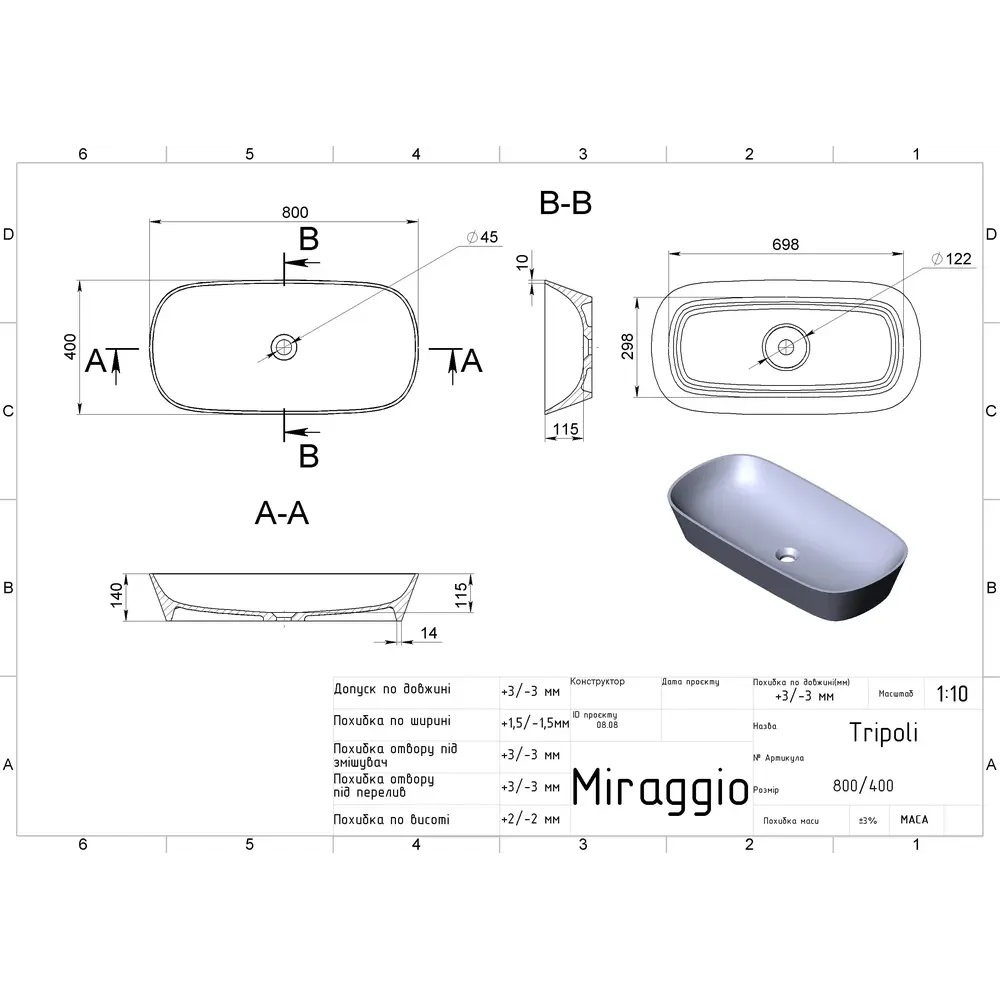 Умивальник TRIPOLI MIRAGGIO зі штучного каменю - це практичне рішення для санвузла дому, готелю чи дачі.