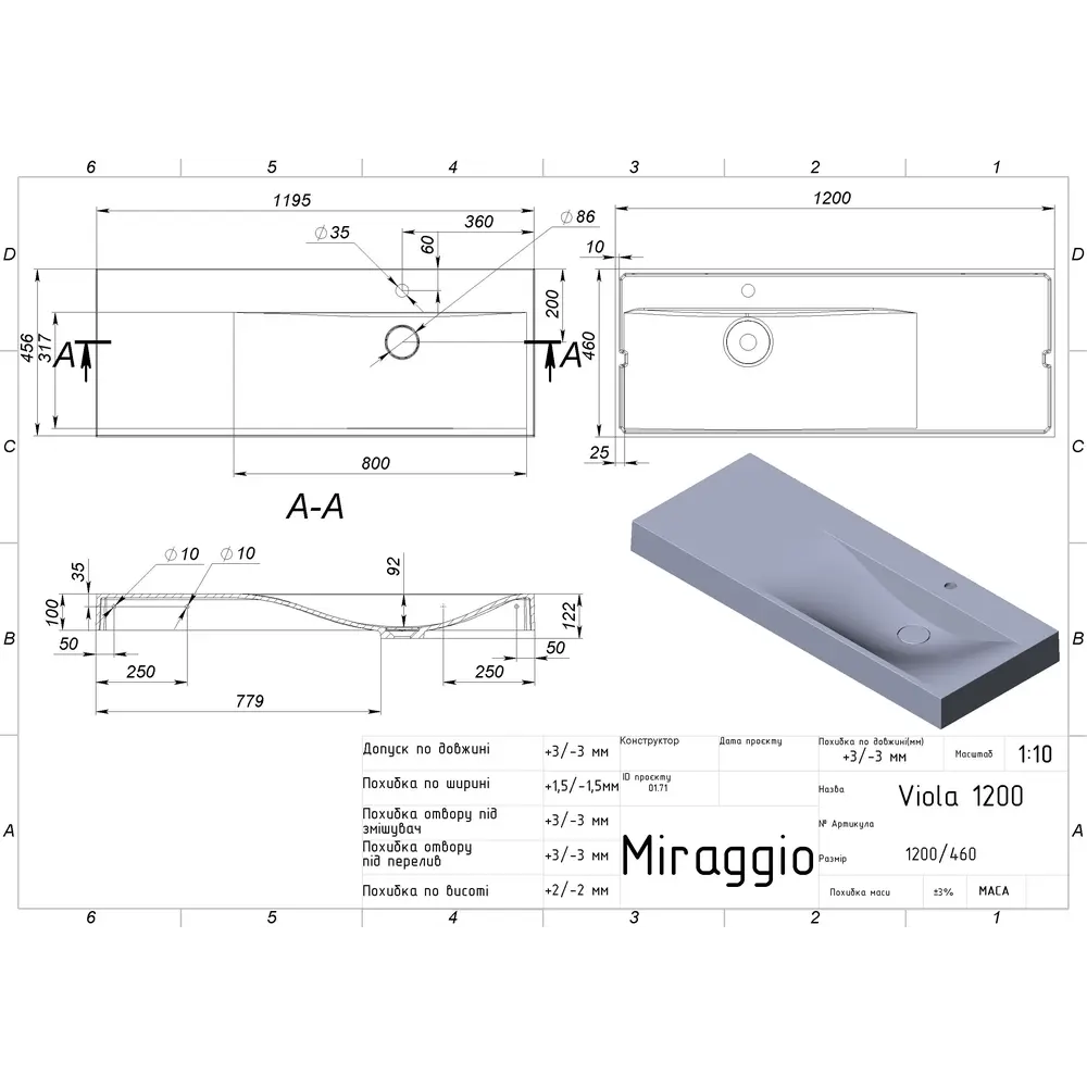 Умивальник VIOLA 1200 R MATT MIRAGGIO зі штучного каменю - це практичне рішення для санвузла дому, готелю чи дачі.
