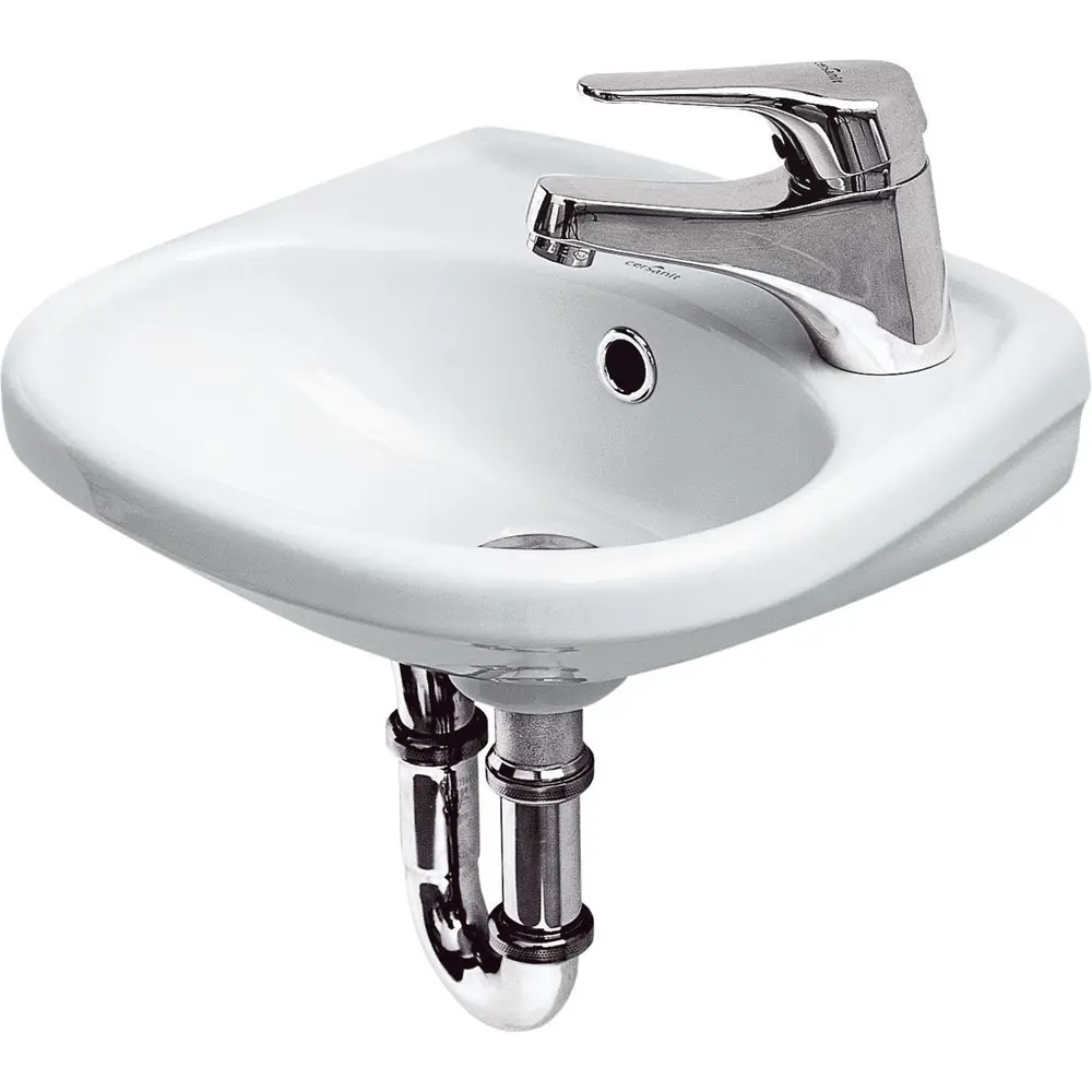 Умывальник EKO 35х30 левый с отверстием для смесителя и переливом был приспособлен для установки непосредственно на стене с декоративным сифоном .