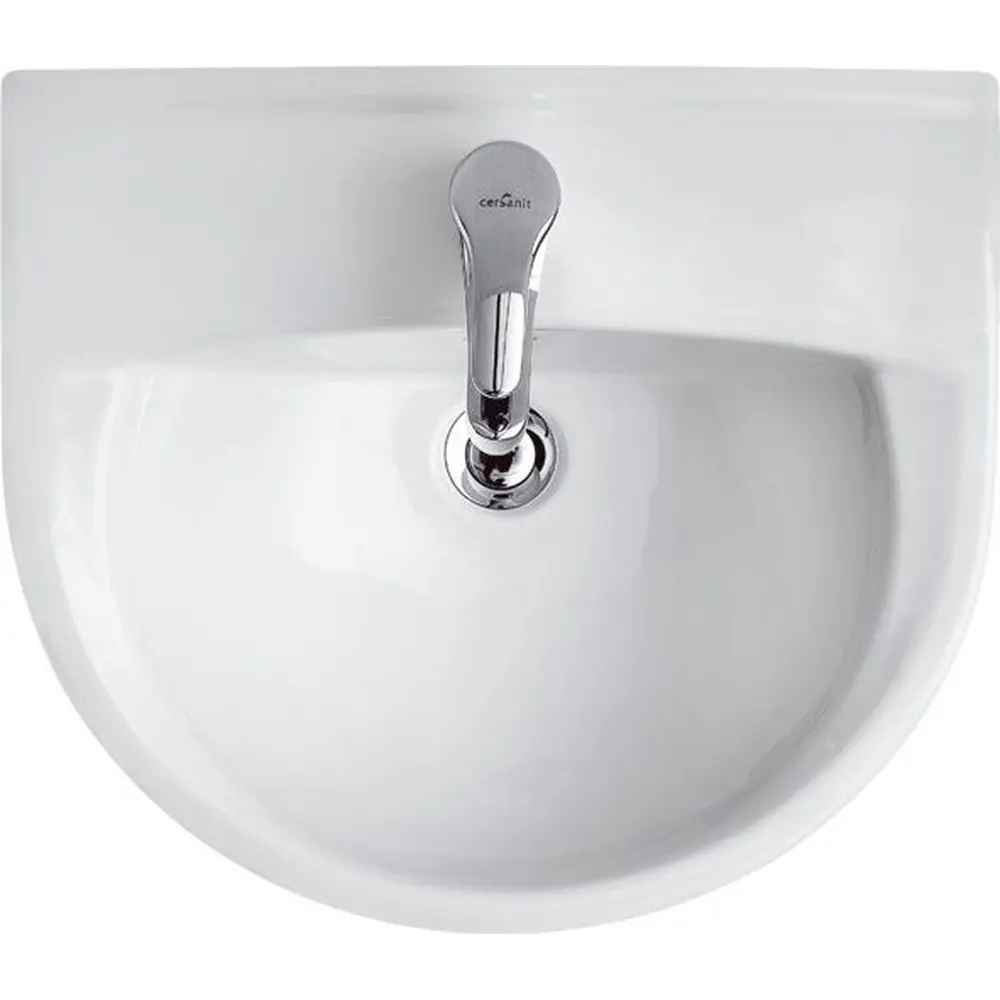 Умывальник PRESIDENT 50 с отверстием для смесителя и переливом был приспособлен для установки непосредственно на стене с декоративным сифоном, напивпедесталом PRESIDENT или пьедестал DECO.