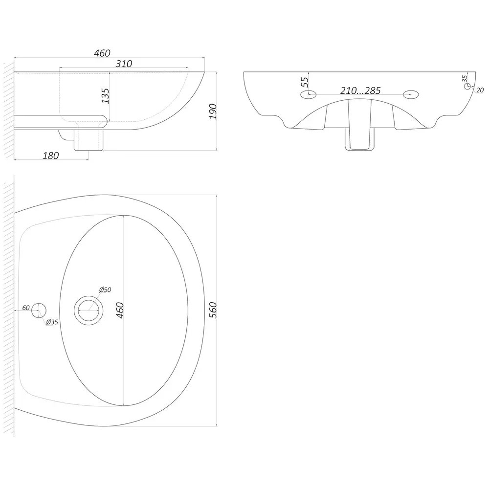 Тип монтажа: на шкафчик, на пьедестал, настенный