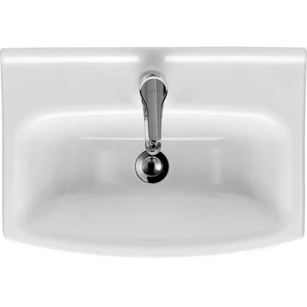 Керамический умывальник CERSANIA 65 с отверстием для смесителя и переливом был приспособлен для установки с мебелью или непосредственно к стене с декоративным сифоном.
