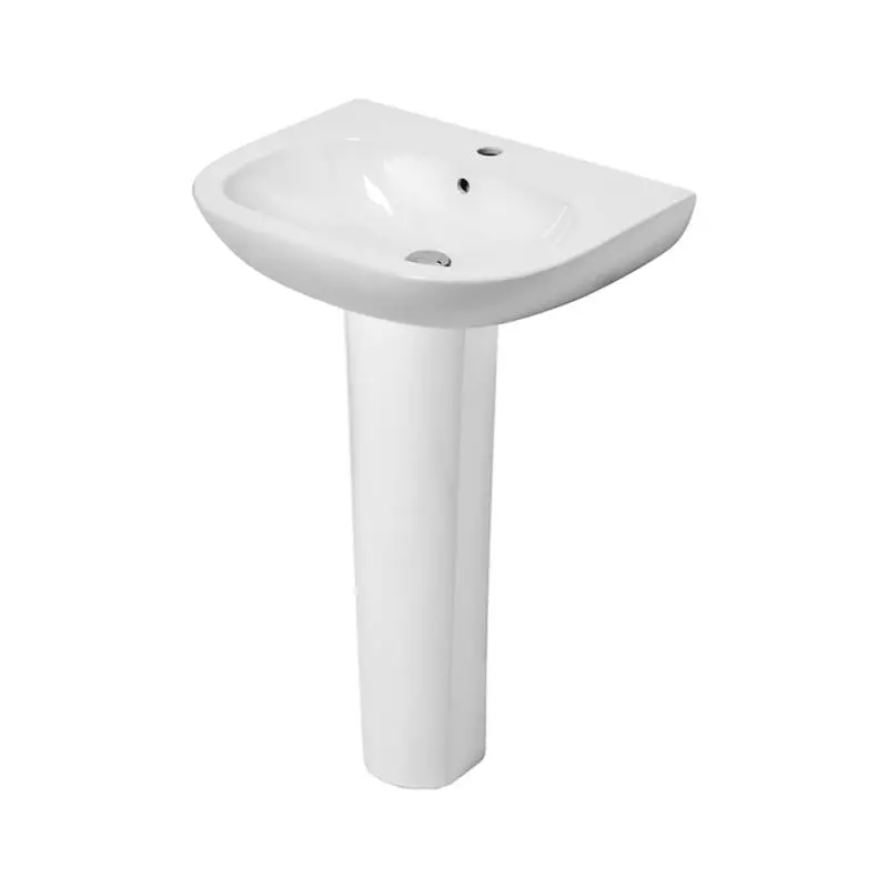 • Умывальники с пьедесталом – классическое решение, скрывающее сифон и коммуникации.