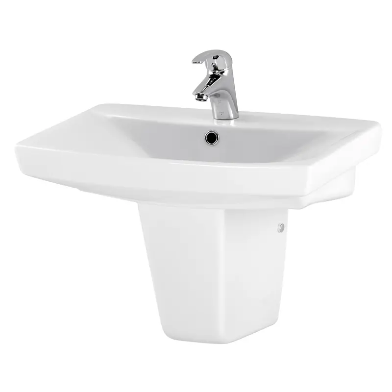 • Умывальники с пьедесталом – классическое решение, скрывающее сифон и коммуникации.