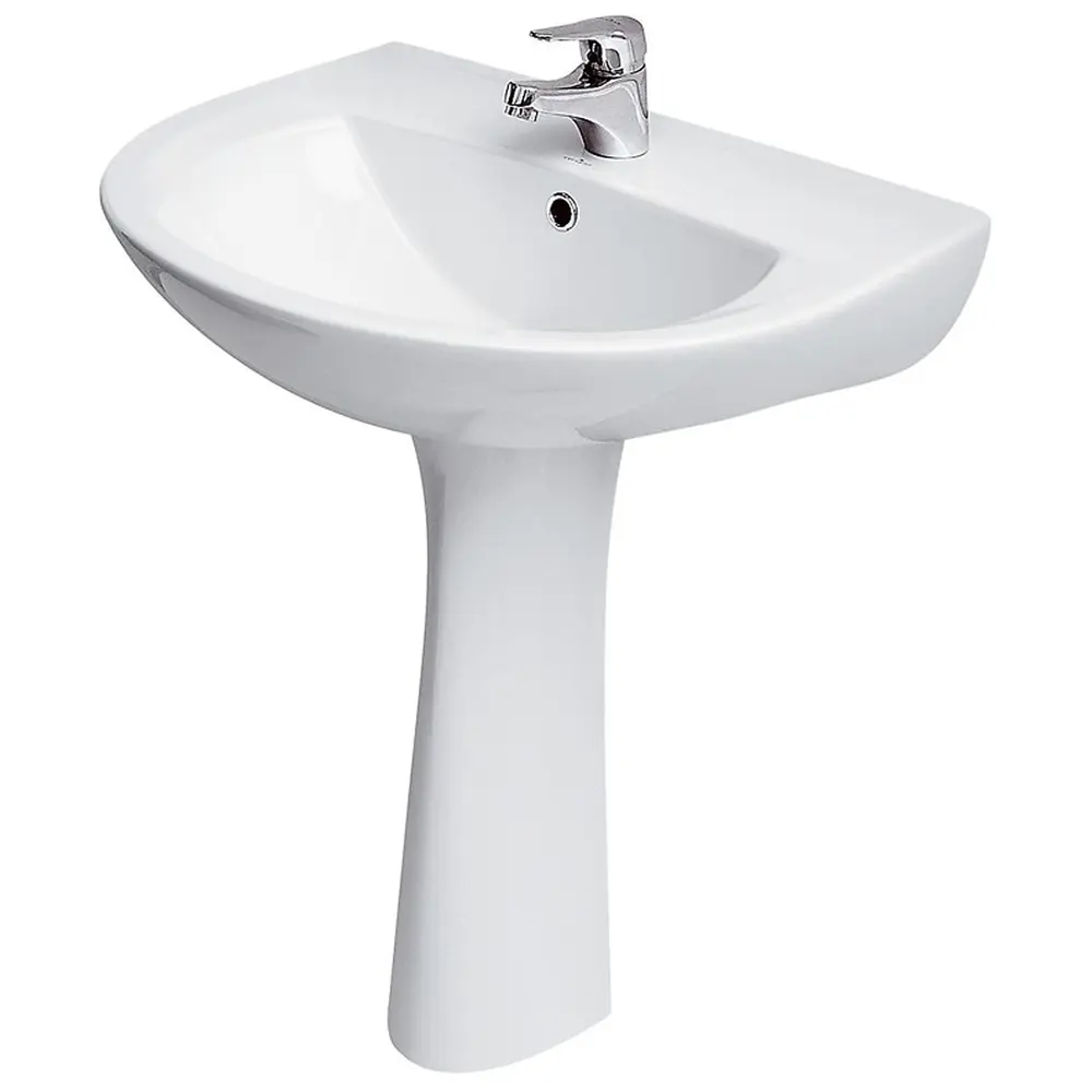 Умивальник PRESIDENT 60 з отвором для змішувача та переливом був пристосований для установки безпосередньо на стіні з декоративним сифоном, напівп'єдесталом PRESIDENT, п'єдесталом DECO.