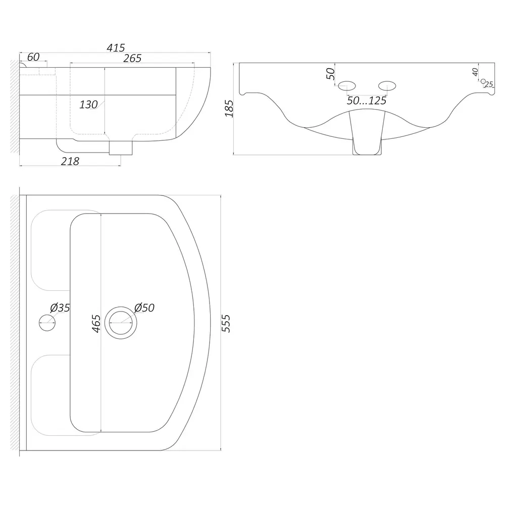 Комплектація: умивальник, декоративне кільце на отвір переливу