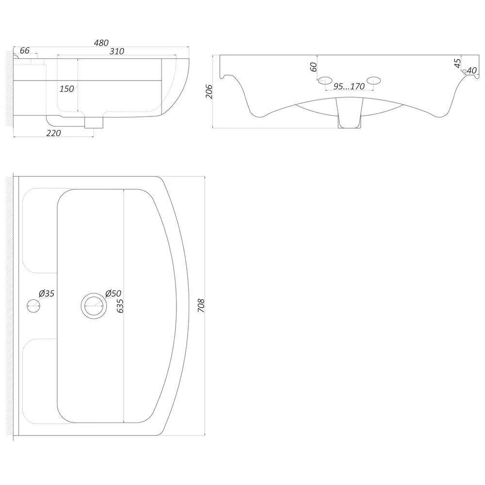 Комплектація: умивальник, декоративне кільце на отвір переливу