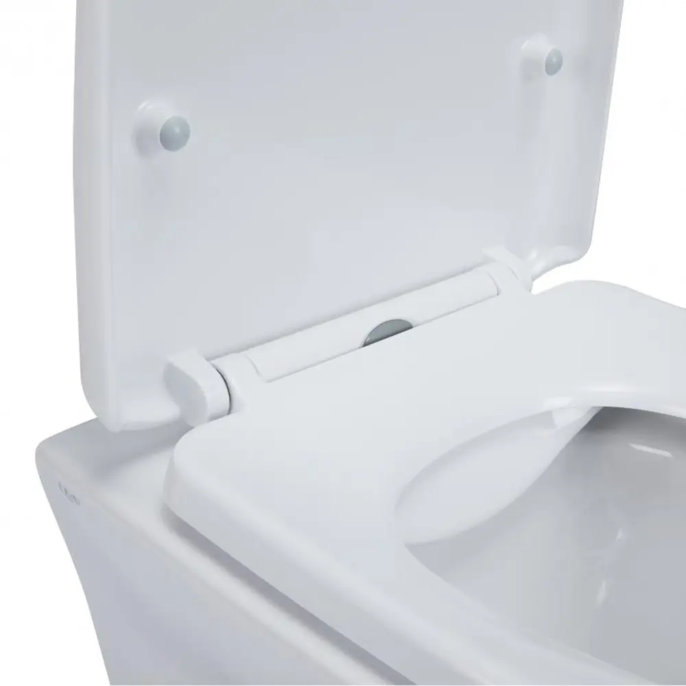Підвісний унітаз Qtap Gemini QT25332614EW виконаний у сучасному стилі, тому буде доречний в будь-якому інтер‘єрі. Чаша унітазу безобідкова, що виключає скупчення зайвого бруду і дозволяє очистити виріб без особливих зусиль. Сидіння з функцією Soft-close опускається плавно і безшумно. Спеціальне гігієнічне кріпильні деталі Quick release дозволяє максимально швидко зняти або встановити сидіння на унітаз. Виріб виготовлено з кераміки білого кольору і вкрито захисною емаллю.