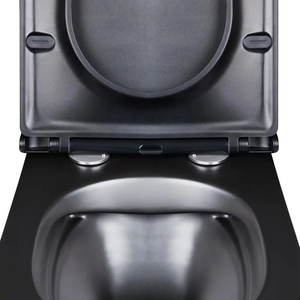 Підвісний унітаз Qtap Virgo безободковий із сидінням QT1833051ERMB має лаконічний дизайн, тому буде доречний в інтер‘єрі у будь-якому стилі. Сидіння з функцією soft close опускається плавно та безшумно. Виріб виконаний з кераміки у чорному кольорі та покритий емаллю для захисту від вологи. Унітаз без обідка, тому зайвий бруд не накопичується і виріб швидко миється. Завдяки підвісній конструкції прибирання не завдасть зайвого клопоту.